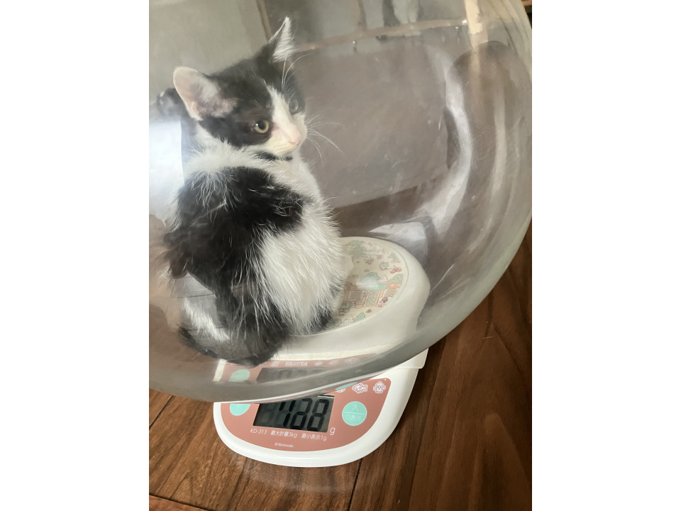 家の前で2匹保護。親ともう1匹子猫がいたが、車に轢かれそうになり離れ離れに。