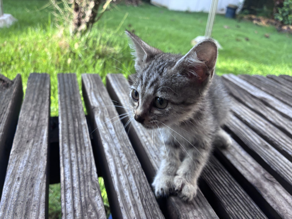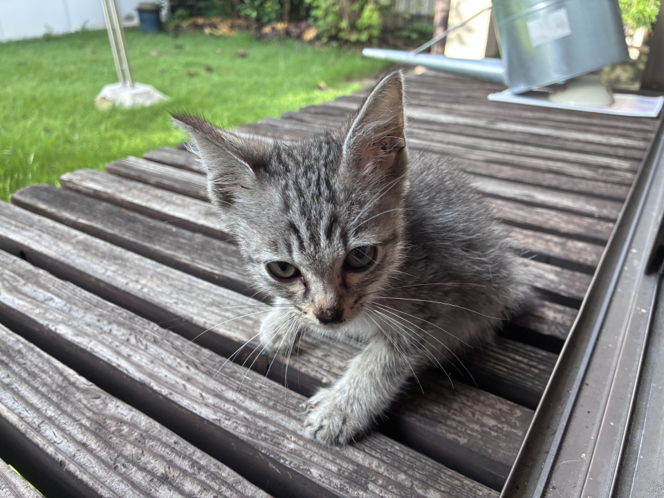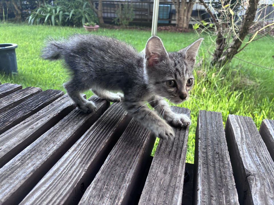 家の庭に入り込んでいるところを保護しました。推定生後2か月くらいの子猫です。