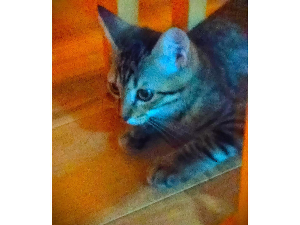 毛並みは、子ネコ特有のふわふわで柔らかく、きれいな子です。