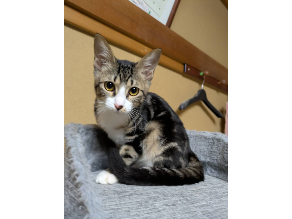 背中はアメショ柄、手足胸は白の綺麗な子です。