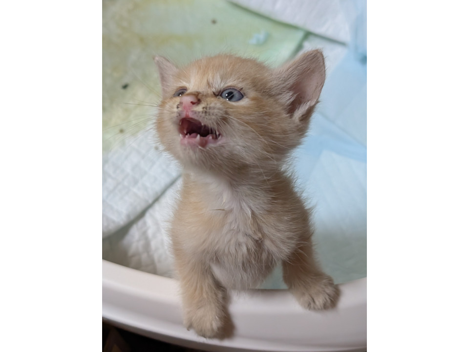 ちょっとちっちゃいけど餌を良く食べます。まだミルクをスポイトで飲んでます。