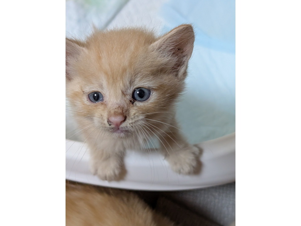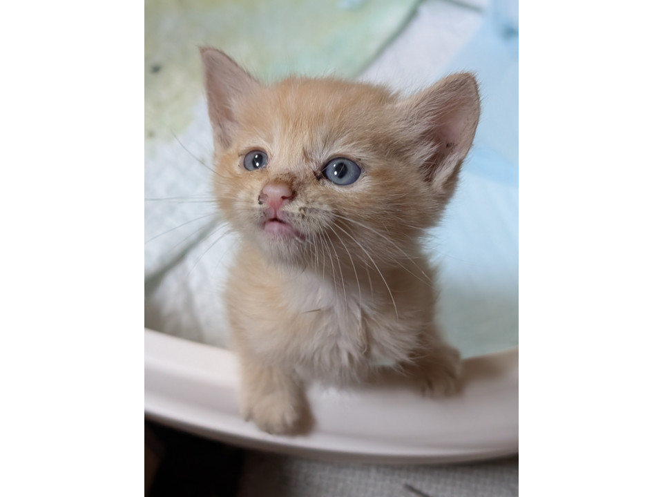 白っぽい茶トラです。ちょっとちっちゃいけど元気です。