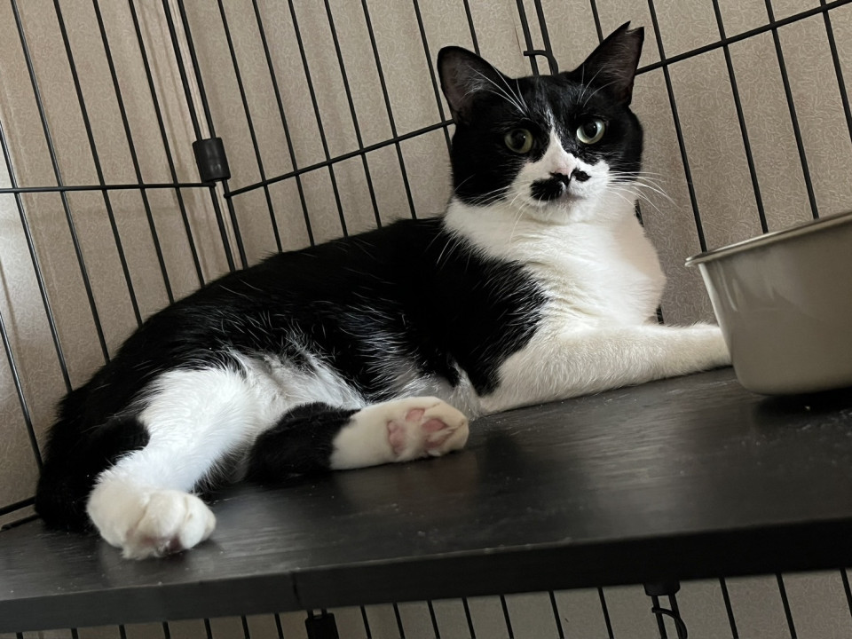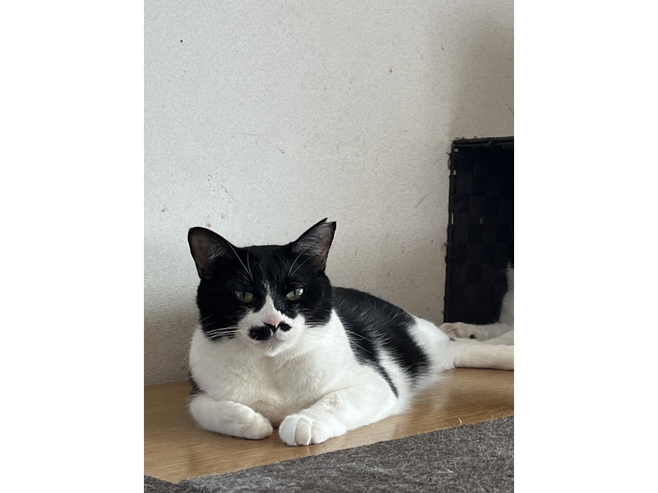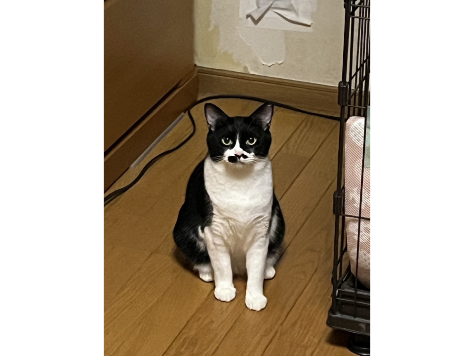 ○推定2-3歳くらい(2025年9月中旬時点)の白黒ハチワレちゃんです。
