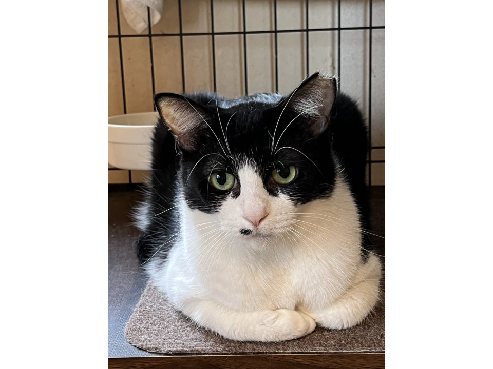 ○推定2-3歳くらい(2025年9月中旬時点)の白黒ハチワレちゃんです。