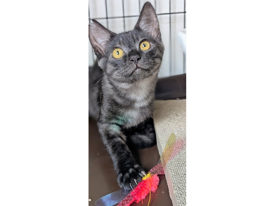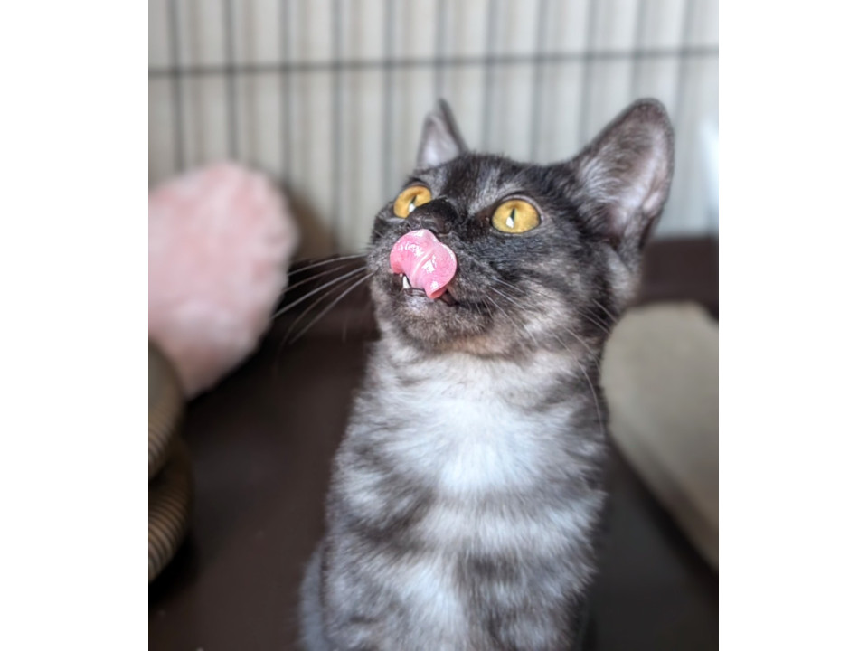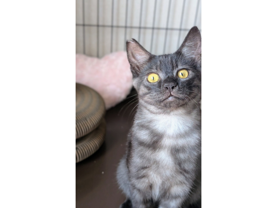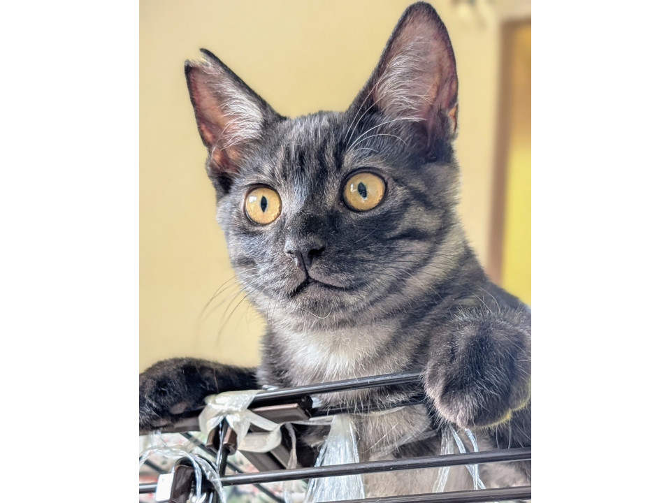 ブラックシャドー柄が自慢の男の子。とにかく甘えん坊で、抱っこされると大満足!