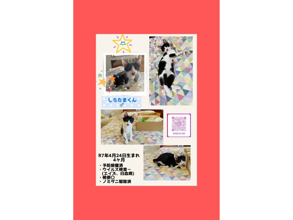 4兄妹で生まれ、他3匹はずっとのお家とのご縁がありました。