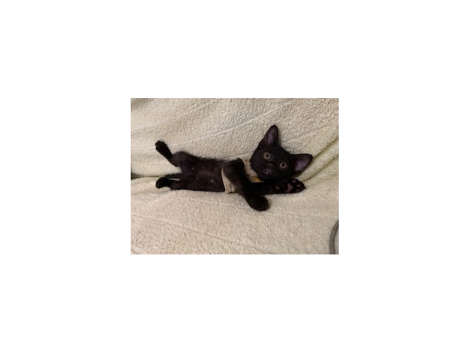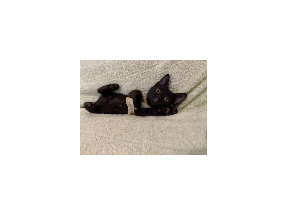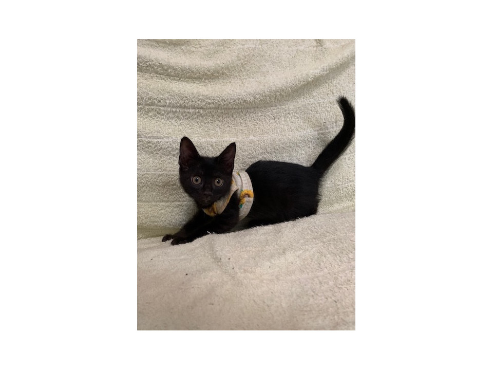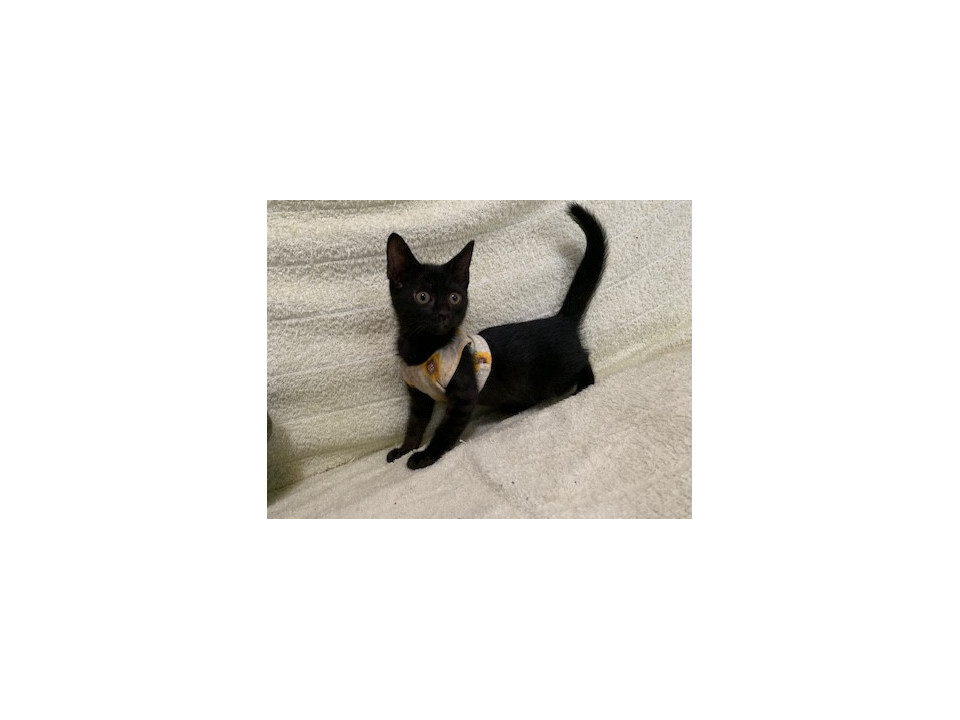 可愛い黒猫、ヴァレン君です。クリクリお目目がとってもキュート。子猫なのでとっても活発です。毎日兄弟たちとわちゃわちゃニャンプロを楽しんでいます。