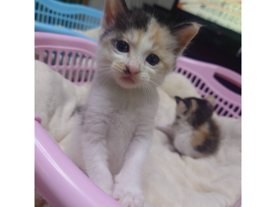 TNRの活動中にボランティアさんが姉妹で発見しました。しばらく様子を見ていたそうですが、母猫さんの姿が見つからず、衰弱もひどかったので保護をする事にしたそうです。現在は北九州のボランティアさんのところで過ごしています。