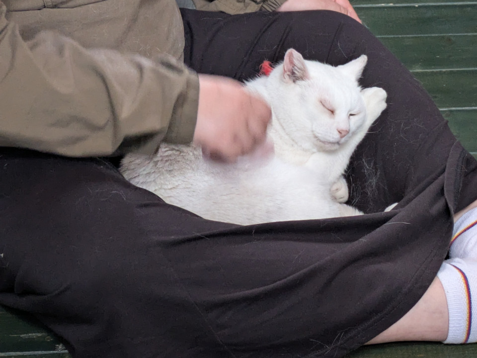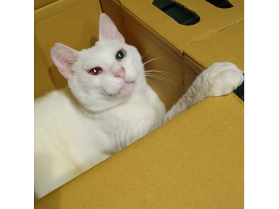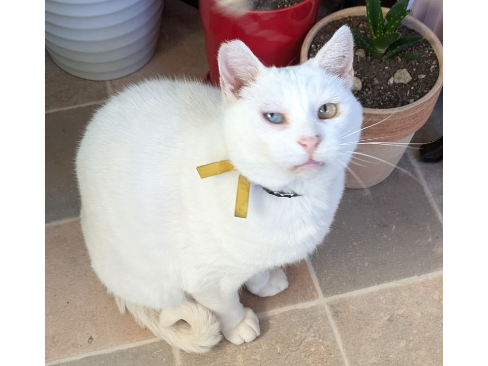 ・白猫によくあるようですが耳が遠めです。他猫と比べ音への反応が鈍く声が大きいです。聞こえてはおりオヤツやダメなどの言葉は覚えています