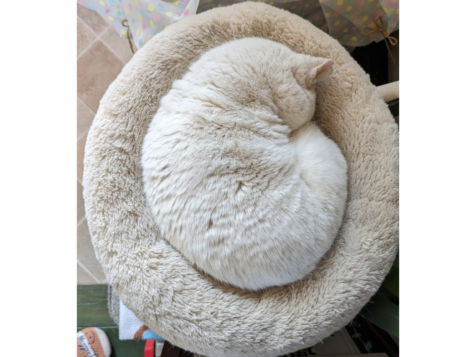 生活リズムは昼型寄りで、昼間に活動と昼寝を繰り返し夜は長く眠ります。また玄関内で過ごす間、一度もマーキングをしたことがありません。