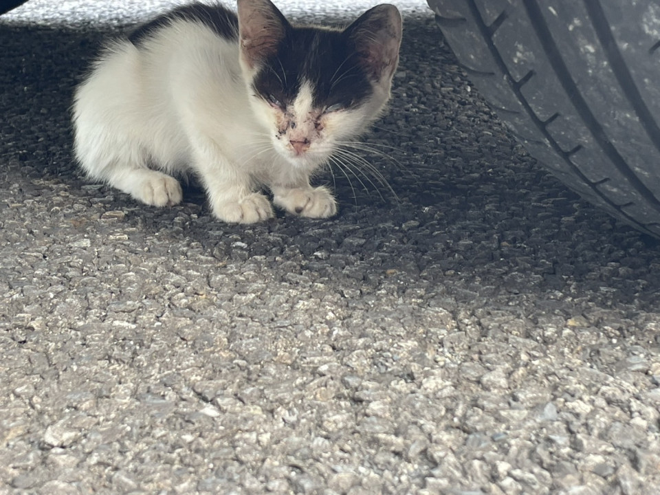 当初はガリガリに痩せて風邪症状があり目ヤニで目が閉じていましたが、