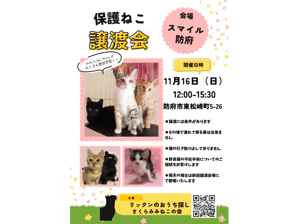 譲渡会にも参加予定ですが、個別のお見合い希望がありましたらご連絡ください。