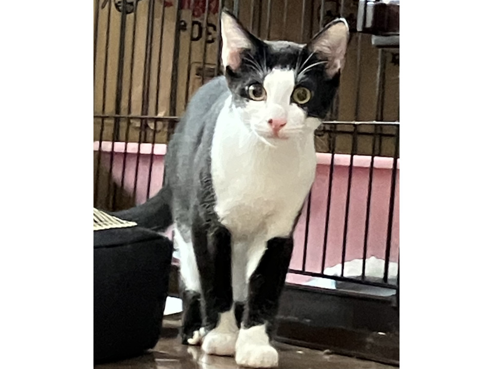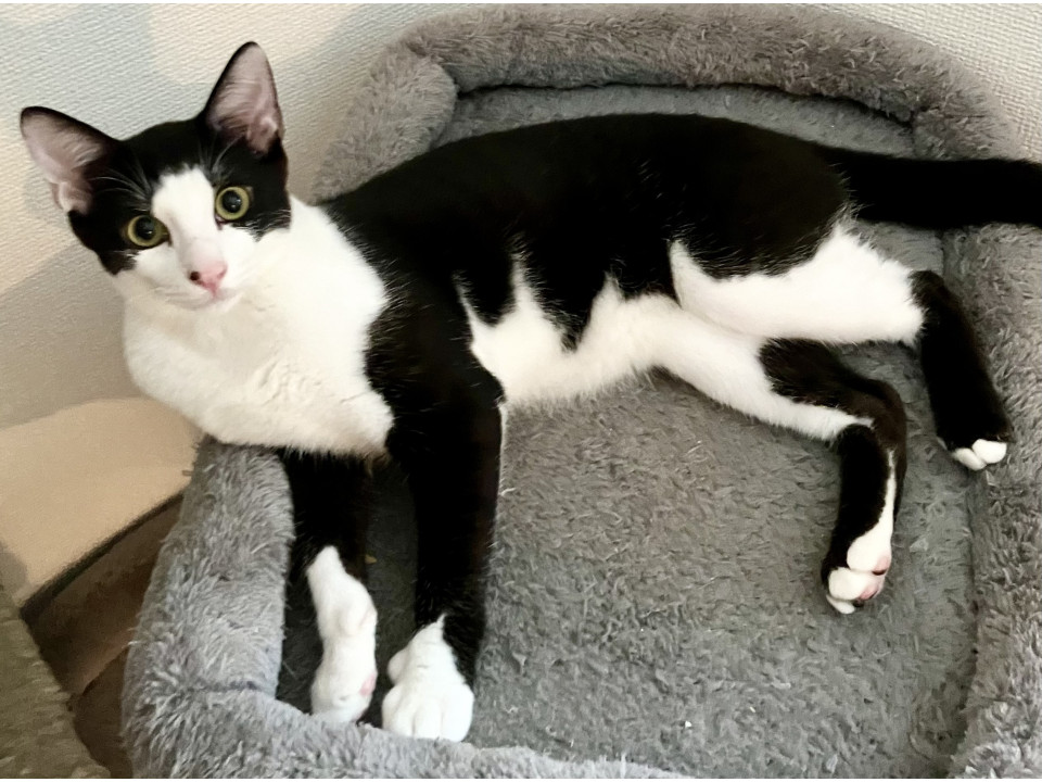 活発で社交的な白黒のお母さん猫と一緒に過ごしてます。