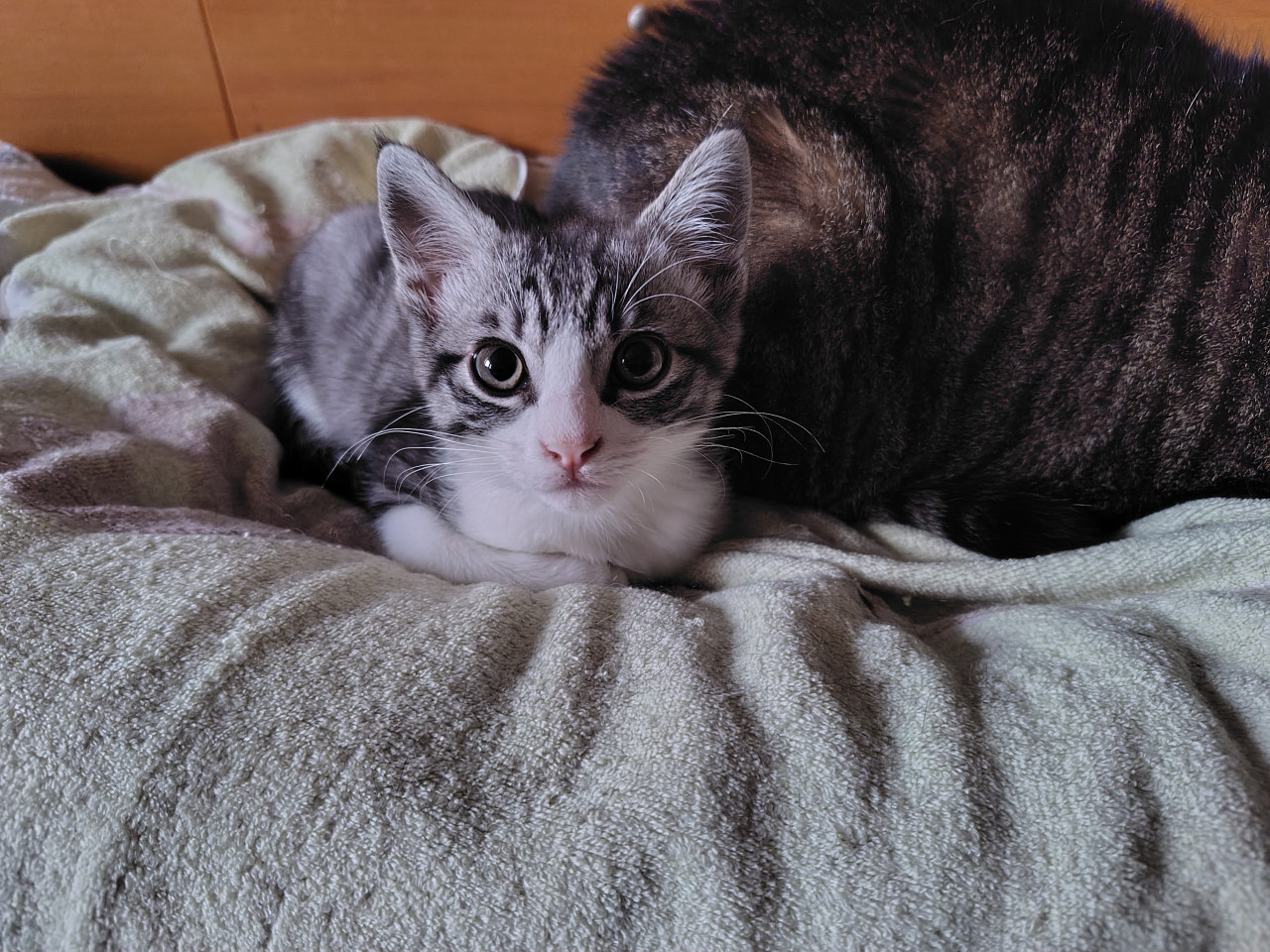今は他の猫や人と寝ることも多くなり、普通の子猫になりました😊