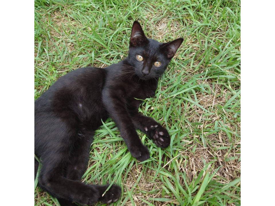 真っ黒でお腹が白い部分がある男の子です!