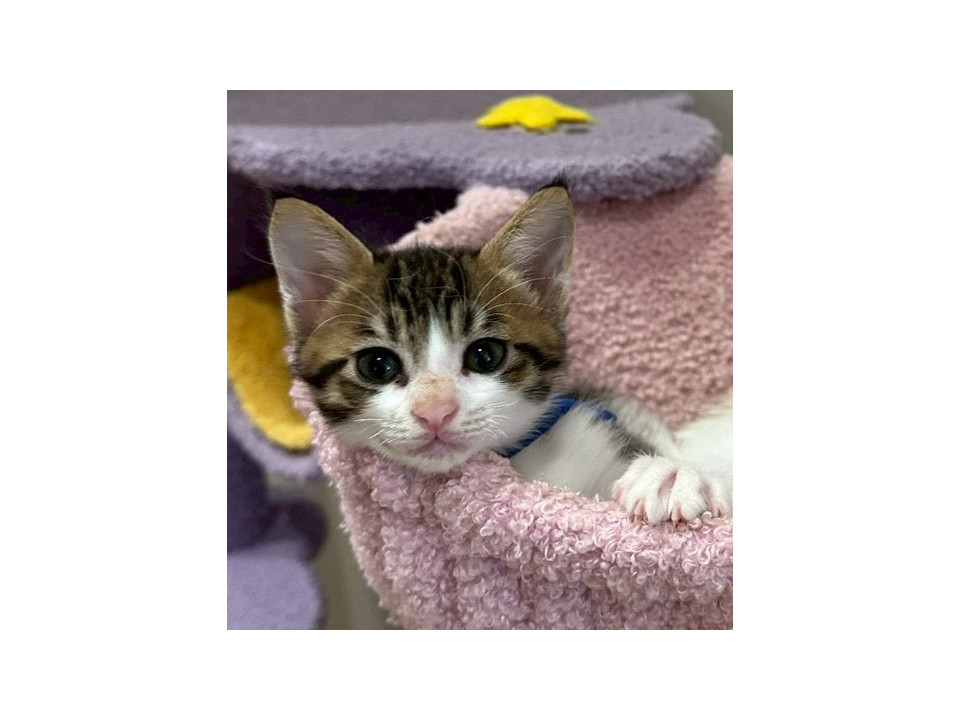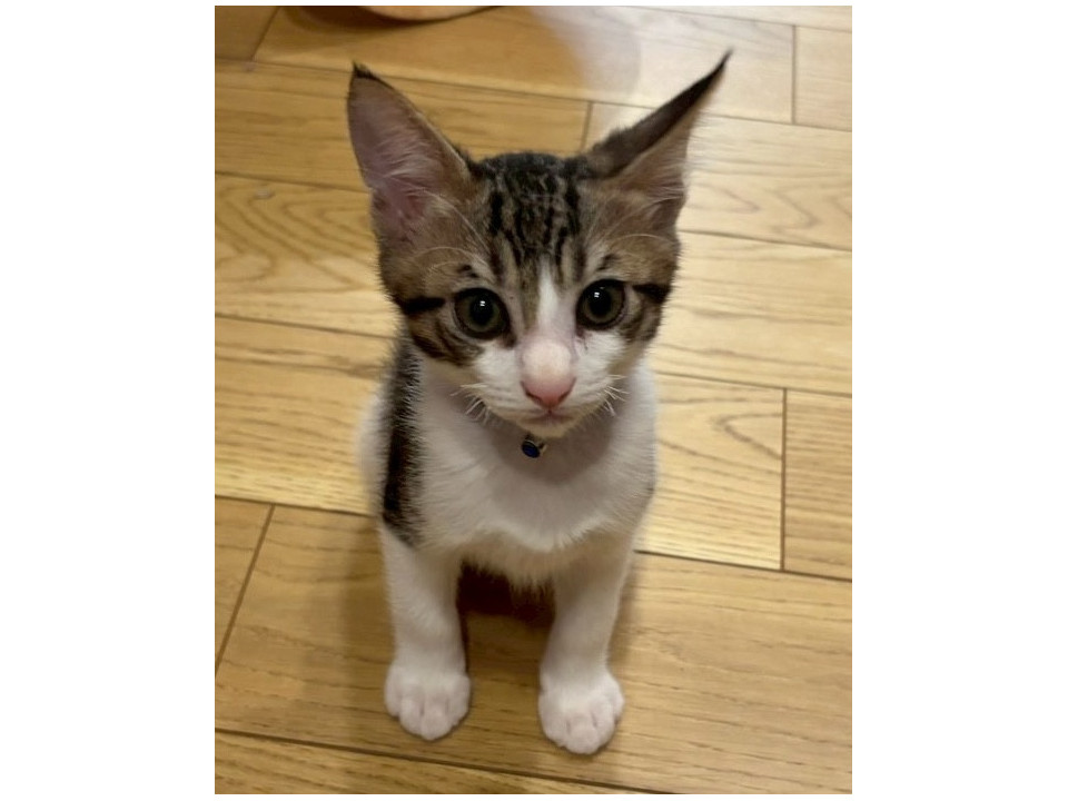 兄妹で唯一のキジ白の男の子です。目はくりくりしてます。しっぽは長く、鼻はピンク、肉球はアポロカラーです。兄弟では1番やんちゃで、折れてしまったお髭がなかなか生えてきません。必ず1番にお膝に来る甘えん坊くんでもあります。
