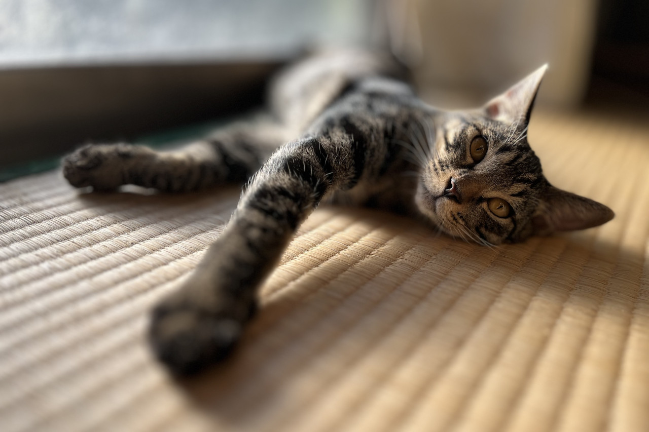 濃いキジトラ、茶色の瞳、長くてまっすぐな尻尾。ツンデレ。わりと天然キャラ。