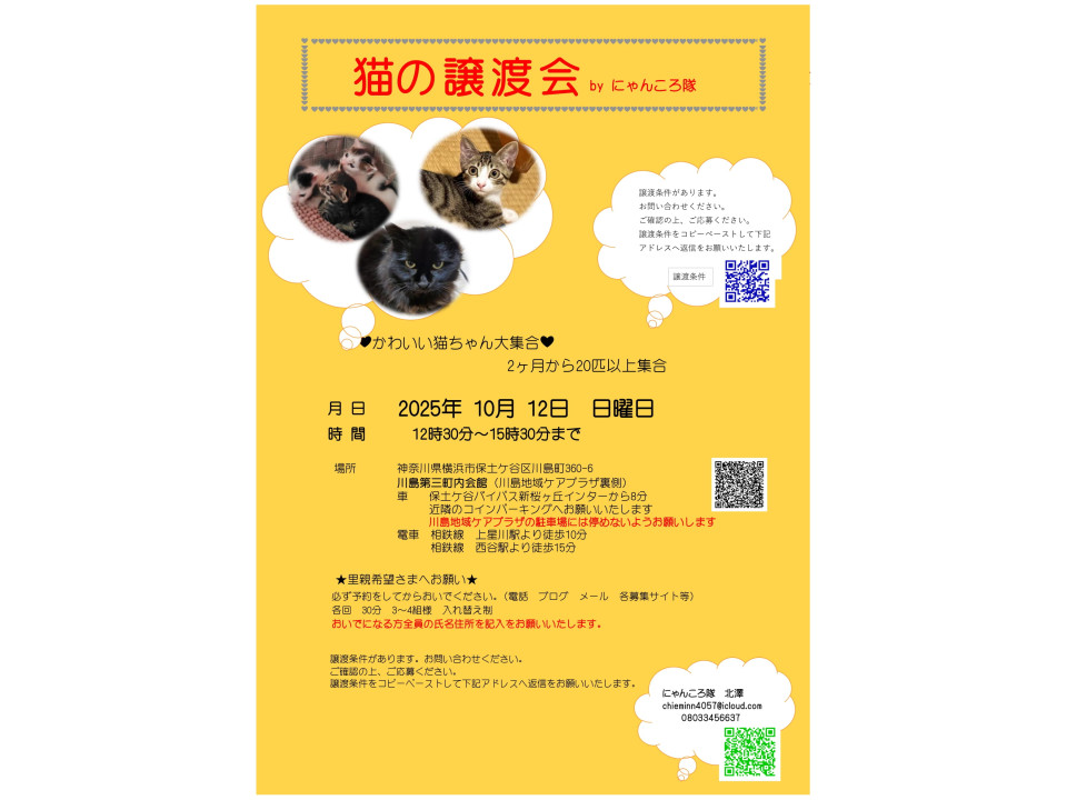 10/12の譲渡会(保土ケ谷区川島第三町内会館)に参加します。