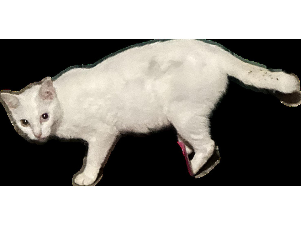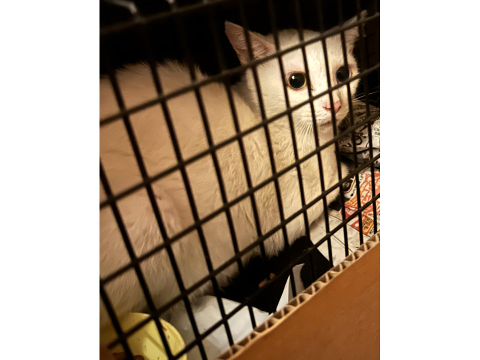 子どもたちのお世話を甲斐甲斐しくしている姿、賢い様子からリターンする決断ができず、まだ2歳程度と若く、3kg程と小さめ、オッドアイであり譲り先も決まるのではないかと考え、ボランティアの方に預かっていただいています。