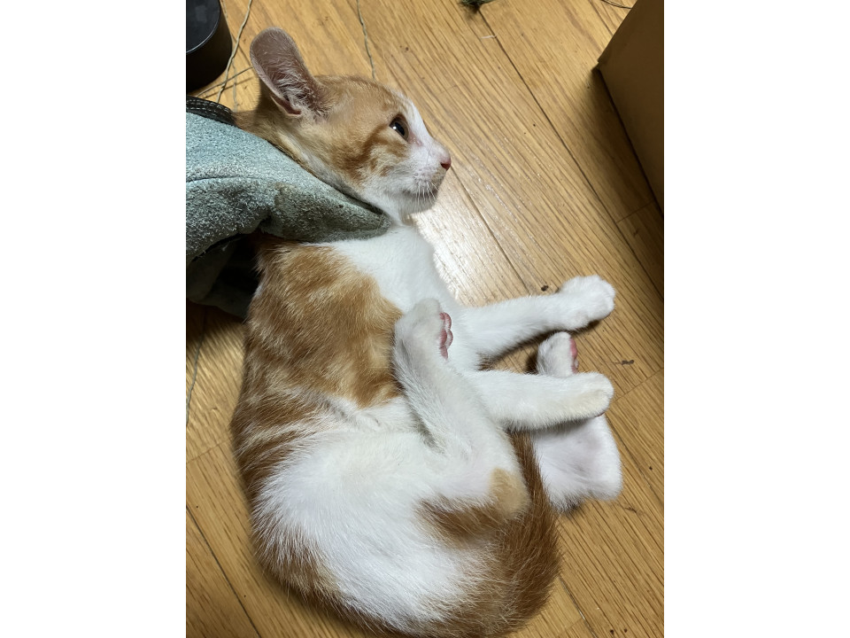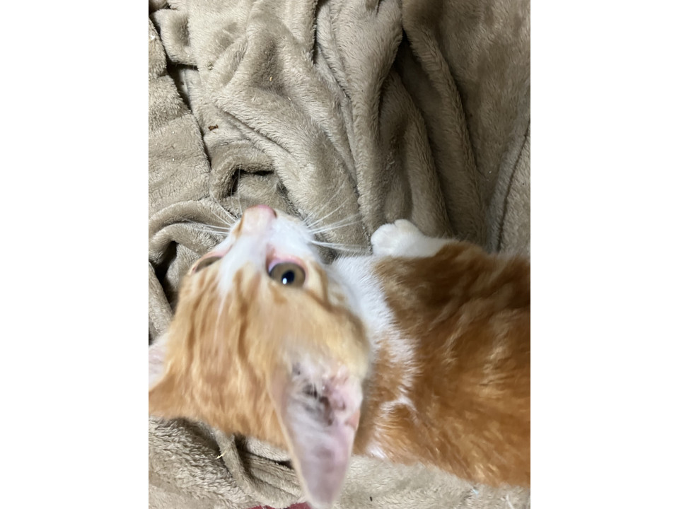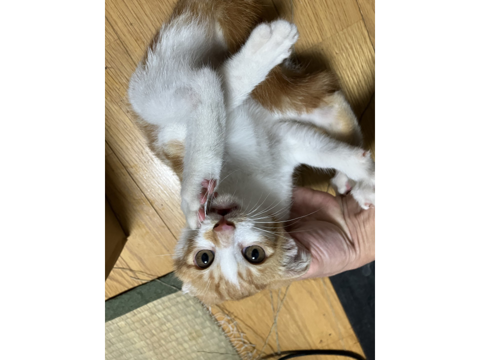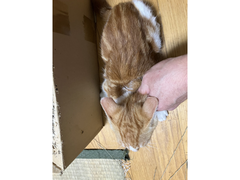 あまり人慣れしていない迷い込んできた子猫です。保護して3日程ですが徐々になついてきてます。生後3ヶ月ちょっとぐらいです。