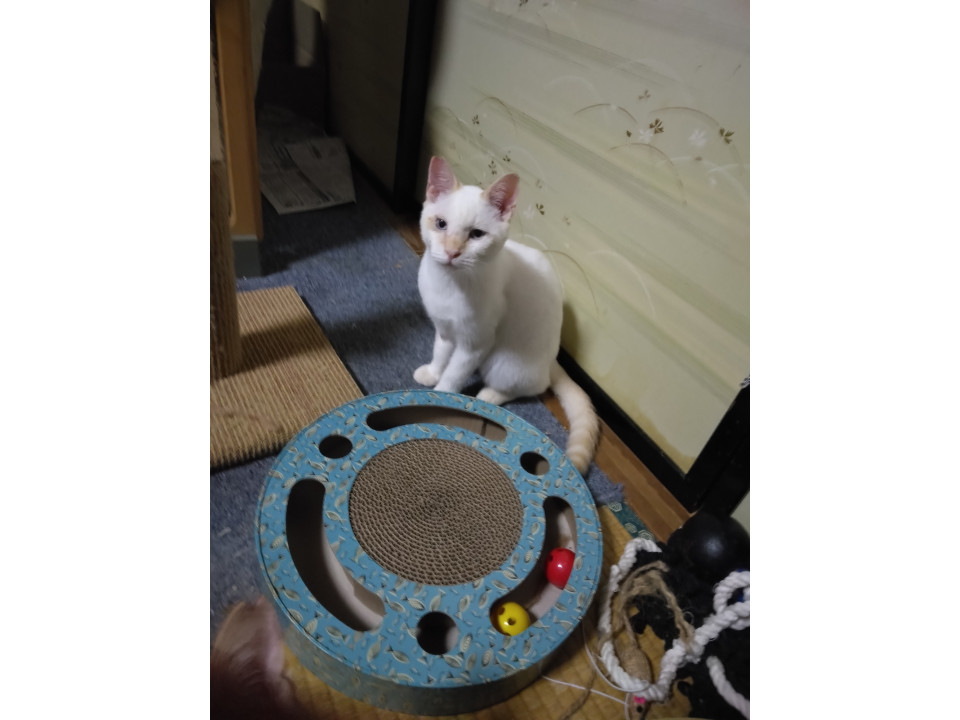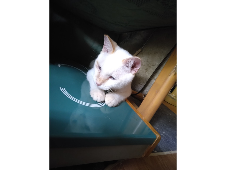 珍しいクリーム色のシャム柄です。目は水色できれいです。