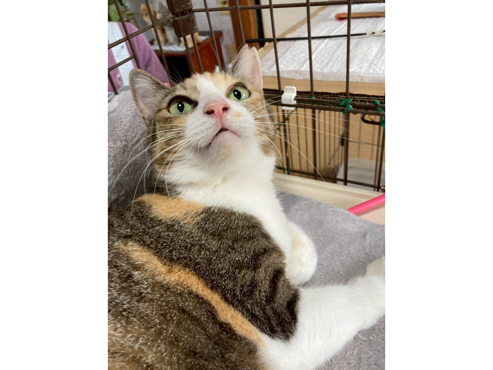 丸っとしたシルエットがとても愛らしい三毛猫さんです!