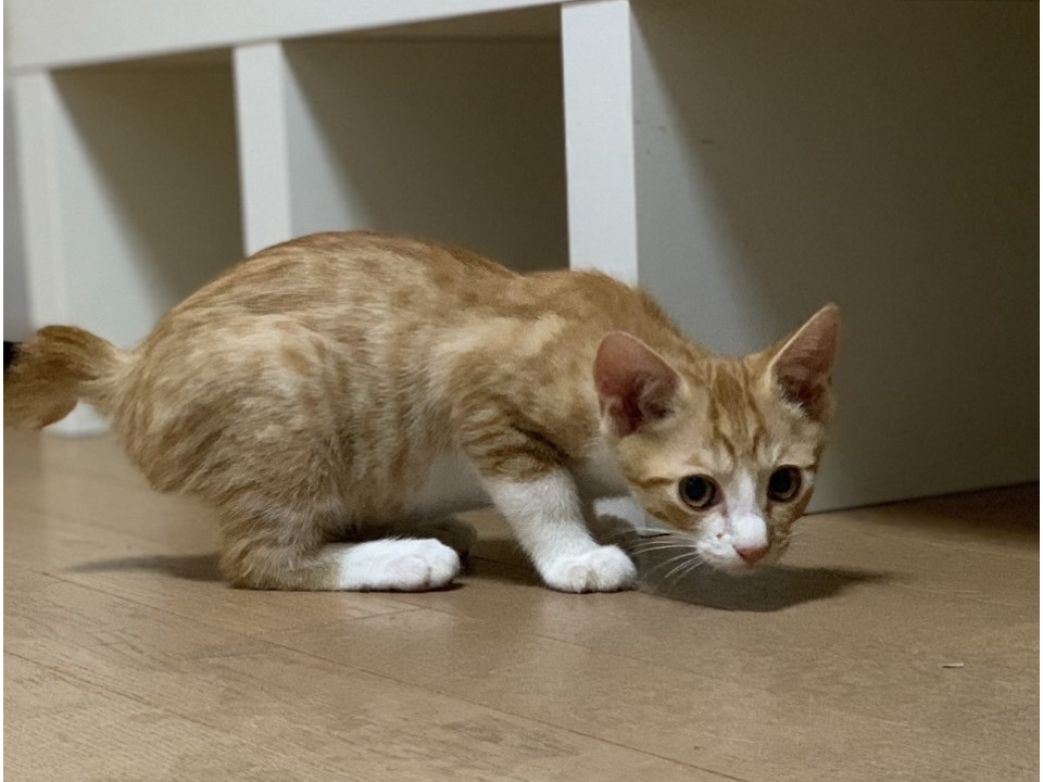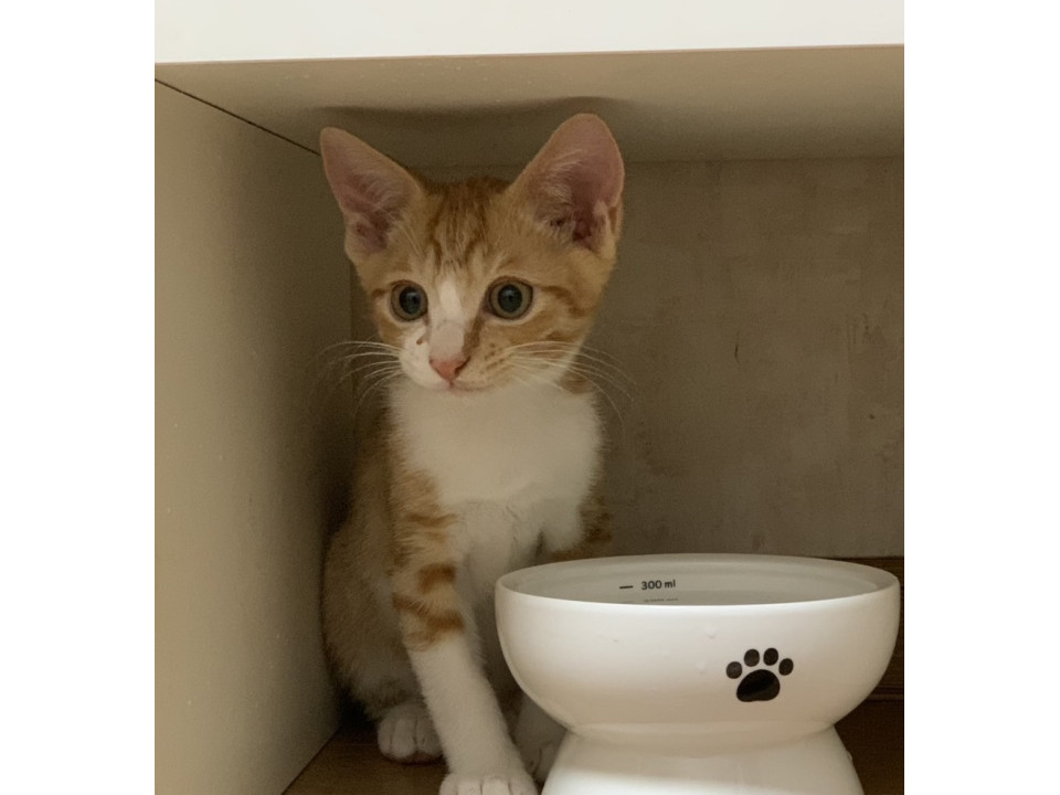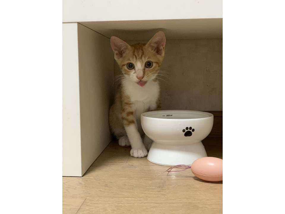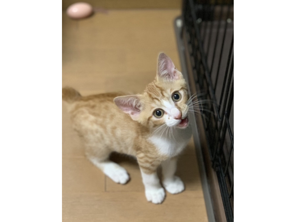 そとでさまよっているところを保護しました。1匹はボンネットに入ってしまい保護するのに苦労いたしました。保護でき元気に過ごして人馴れしましたので里親募集開始です。