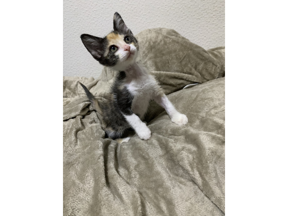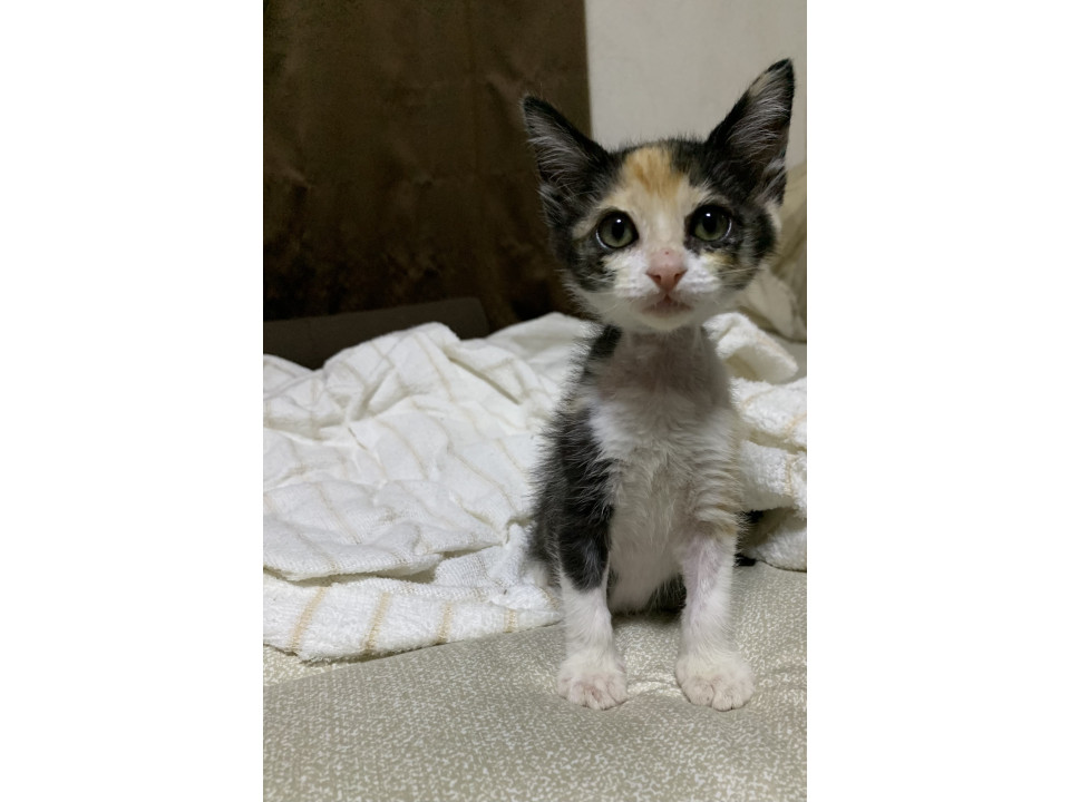 衰弱している所を保護し、入院して点滴、輸血をしたので毛を刈っているところはありますが、今はとても元気でカリカリも食べられます☺︎