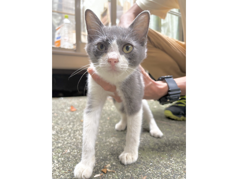 綺麗なグレーと白のハチワレです。