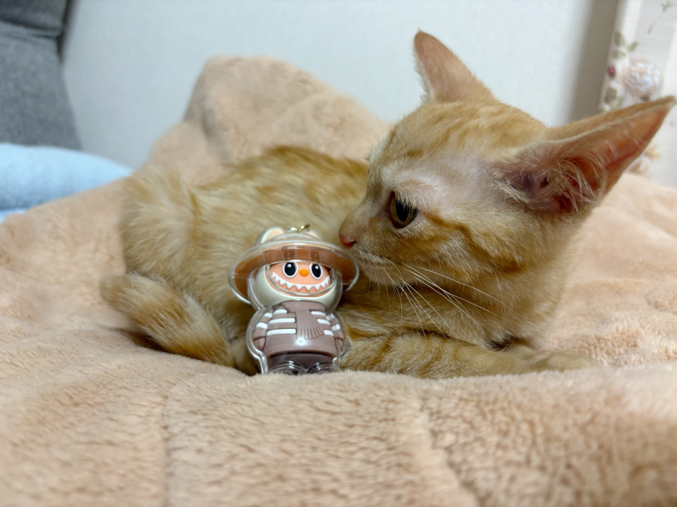 ゆずちゃんにいつも「かまって!かまって!」と遊びに誘っては、兄妹ぴったりくっついて腕の中ですやすやお昼寝する姿がとっても愛らしいです。