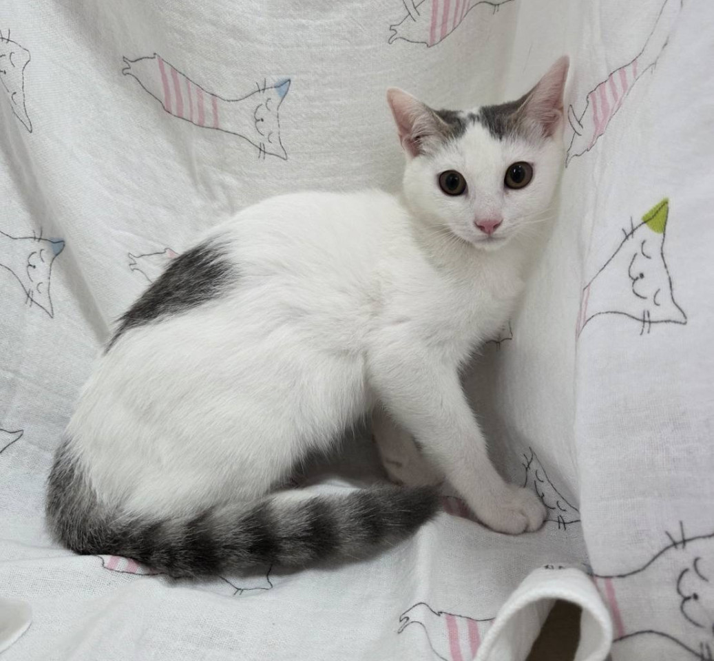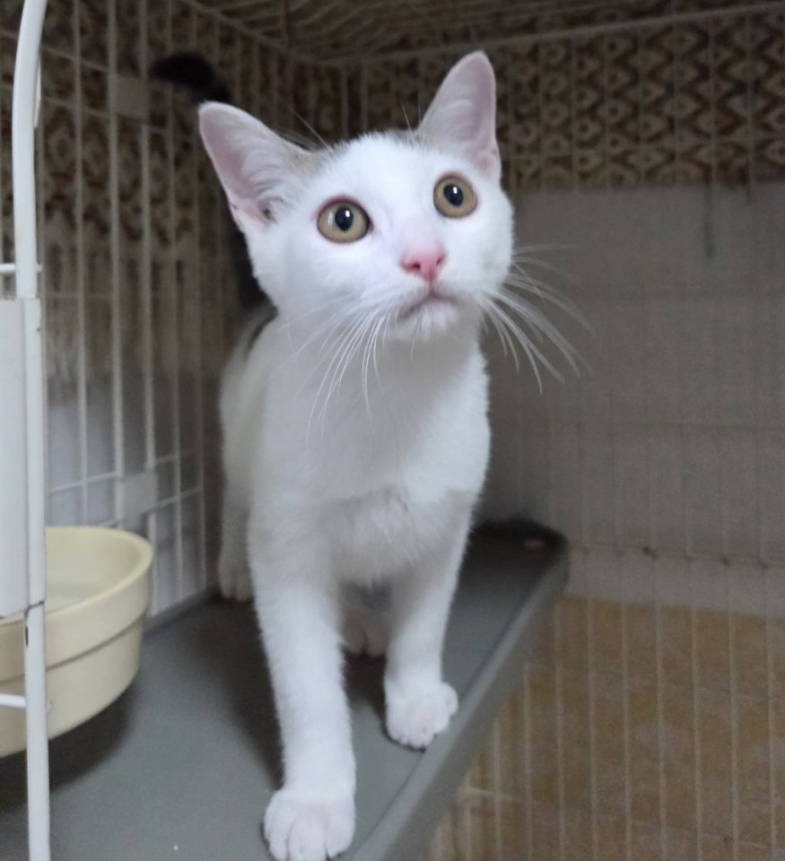 大人猫との関係性はまだはっきりわかりませんが、子猫なので慣れるのは早いと思います。