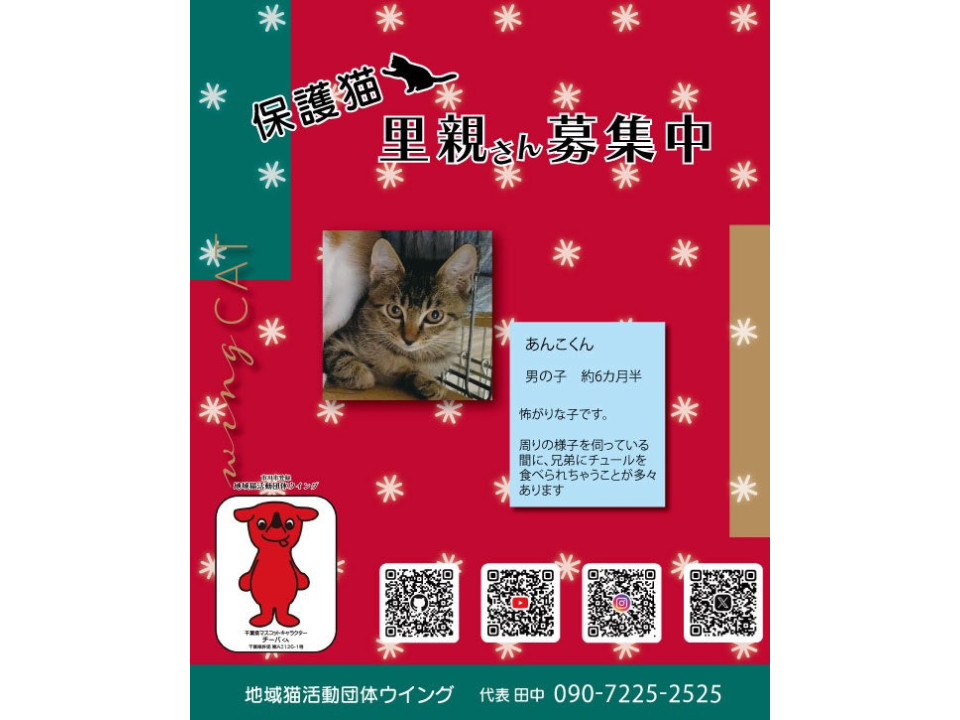 あんこ君達、3匹兄弟は、約4ヶ月半で保護をした為、とても怖がりでしたが、だいぶ馴れて来ました。