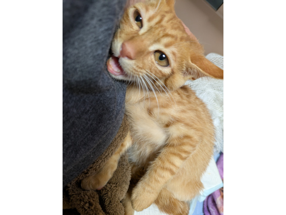 ブラウンタビーの綺麗な子です。4ヶ月半位まで、母猫と一緒に、野良猫をしていたため、シャー!ふうぅー!は、挨拶になっている様ですが、引っ掻いたり、噛みつかれた事はありません。