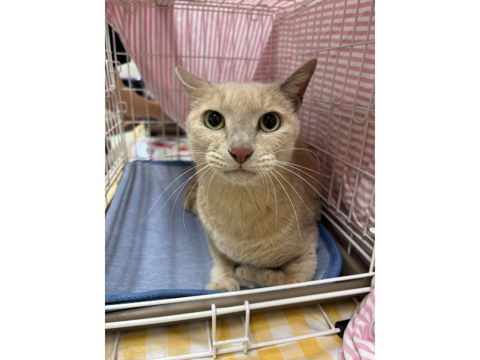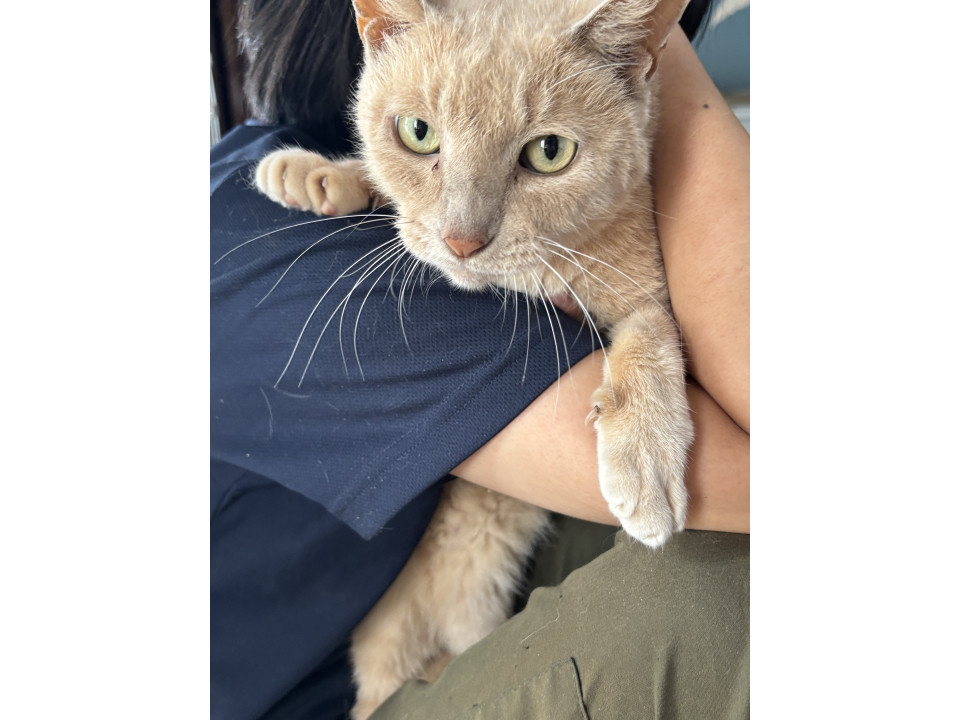 人が大好きで、なでなでするとスリゴロふみふみです!茶トラとはちょっと違う、クリーム色で、毛艶もよく、おとなしくおりこうです。