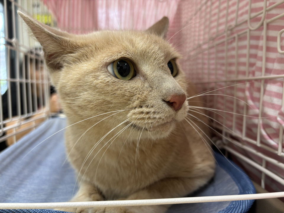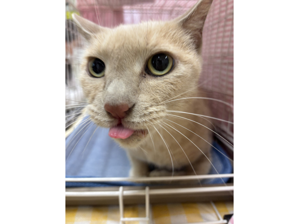 飼い猫として飼われていましたが、飼い主さんが亡くなったことで家の外に出されてしまい、保健所へ。そのため保護に至りました。