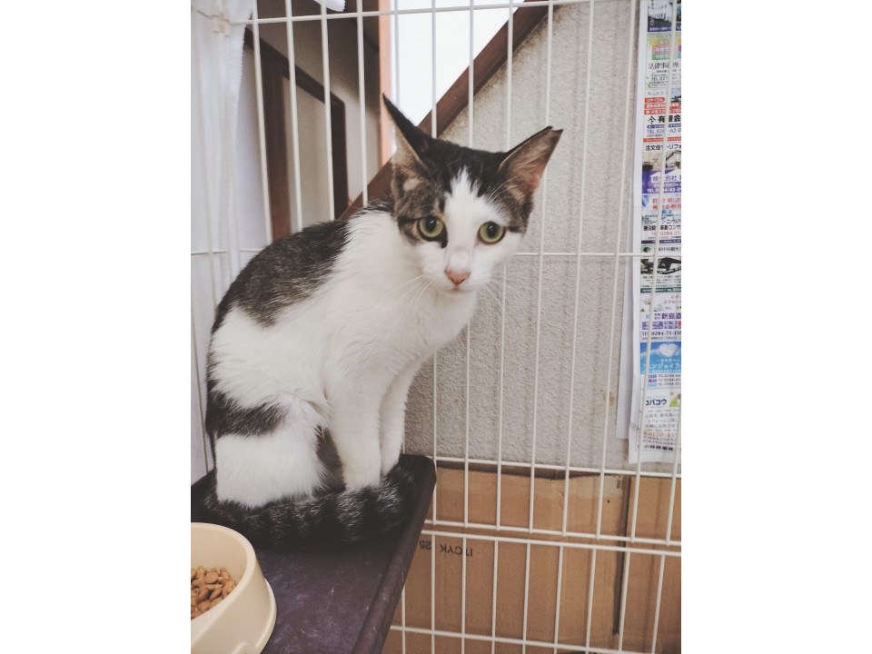 保護時、首輪を襷掛けしてたらしく首と脇の下にケガをしていました。良く食べ良く飲みます。血液検査は陰性です。ワクチン接種も済んでます。