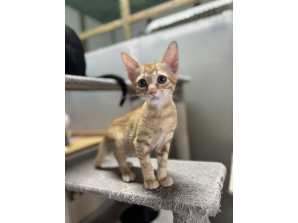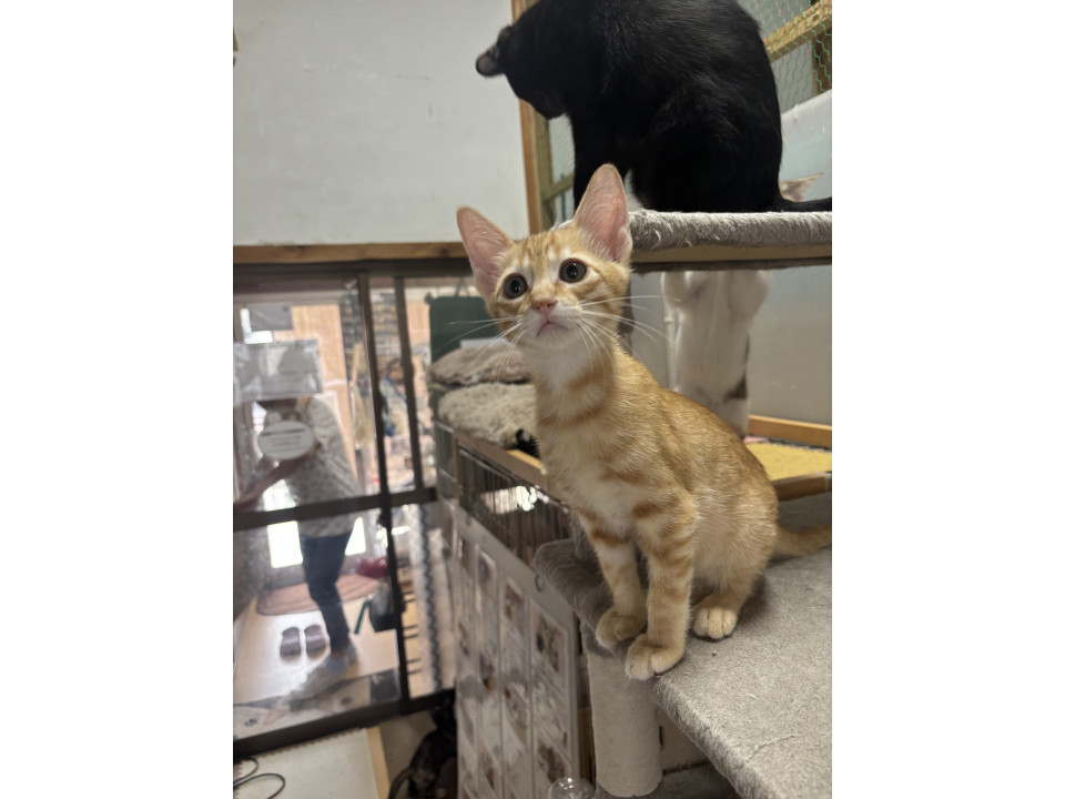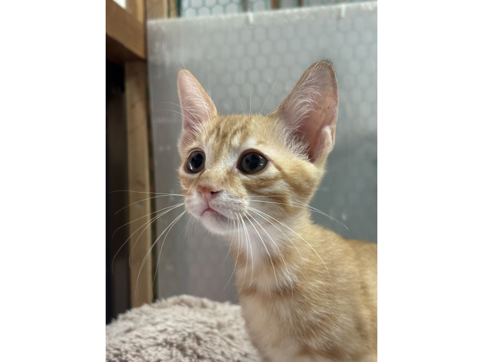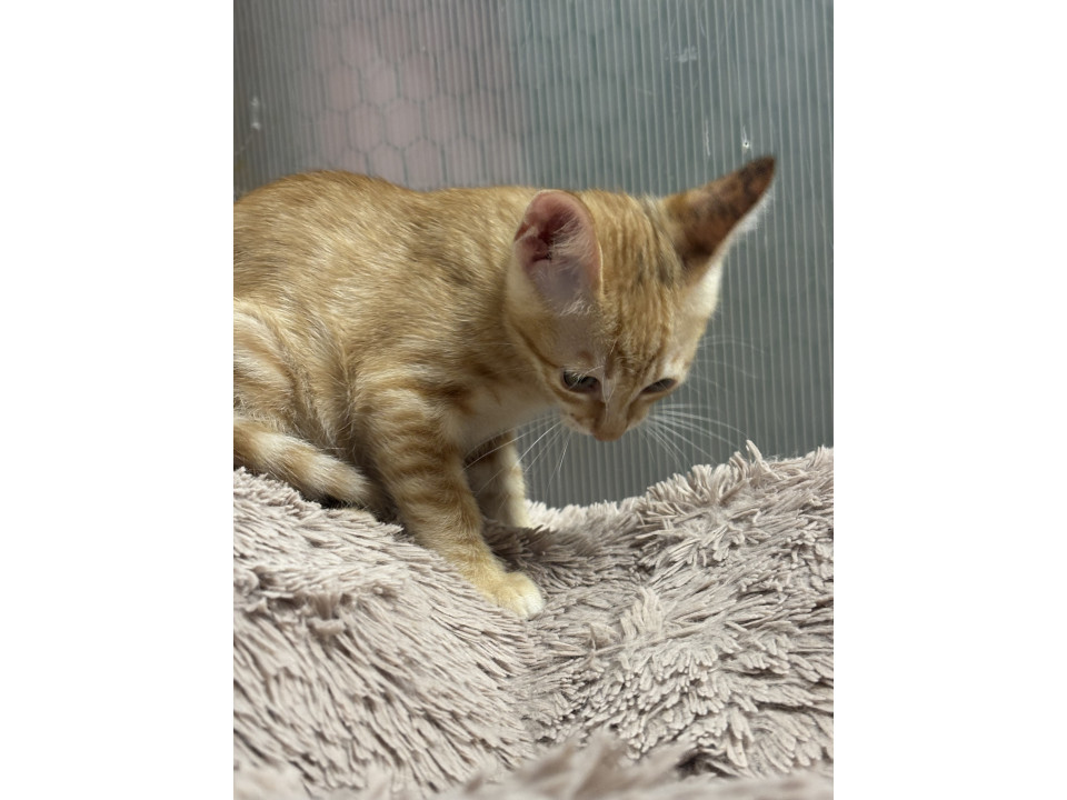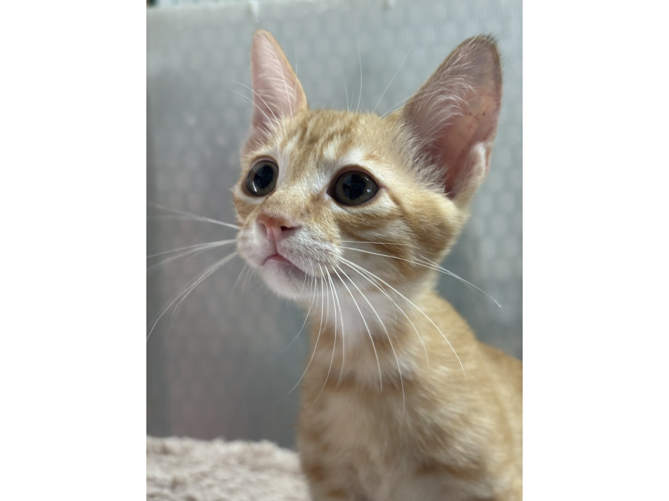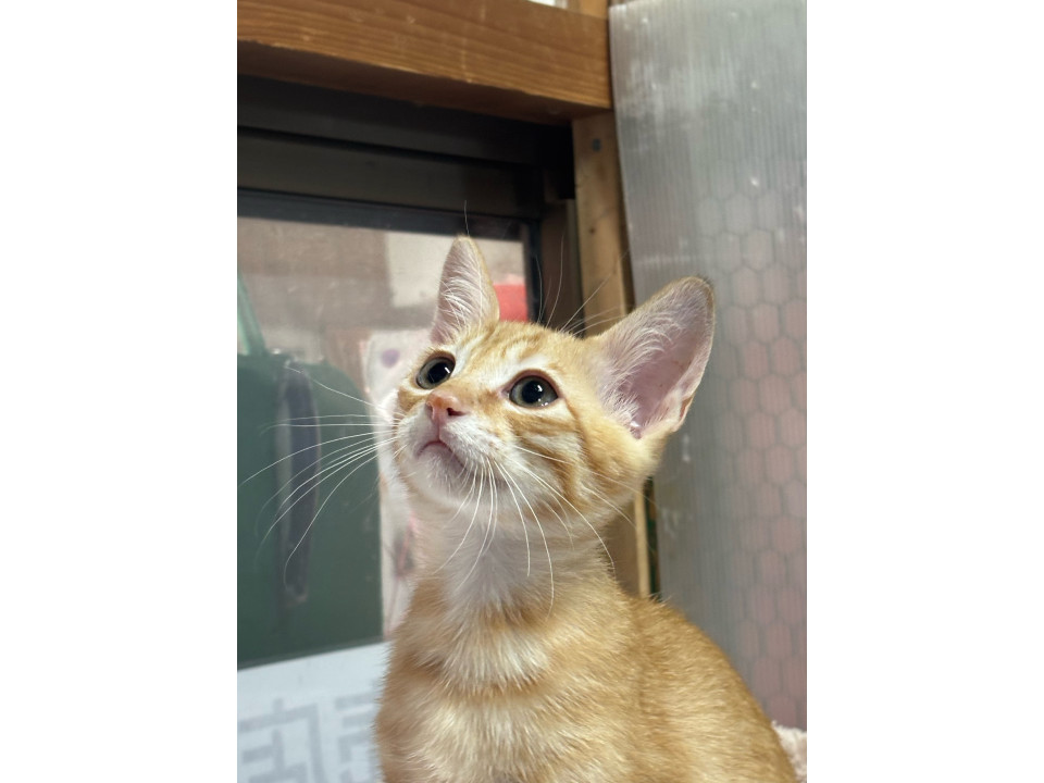 茶トラですが、左耳に少し黒が混ざってる珍しい茶トラくんです