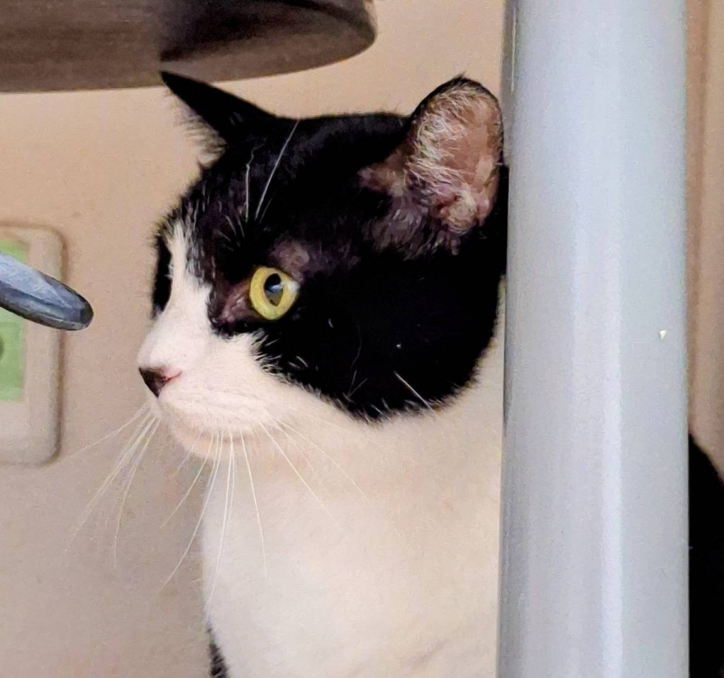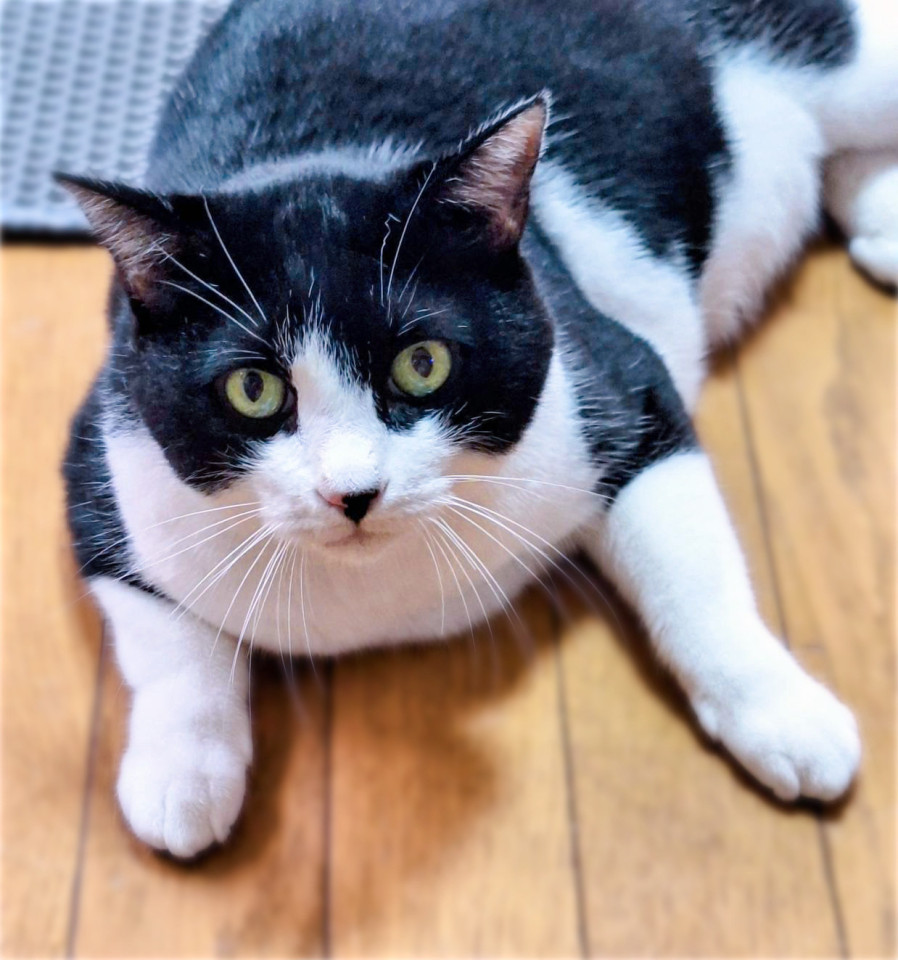 あどけないお顔が可愛い黒白猫のエモンくん。