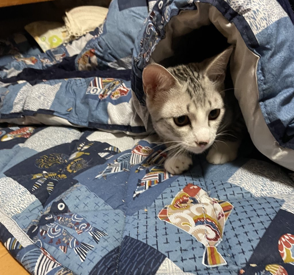 実家で家族が保護した猫を持ち上げたら、なんと赤ちゃん猫が産まれていました。