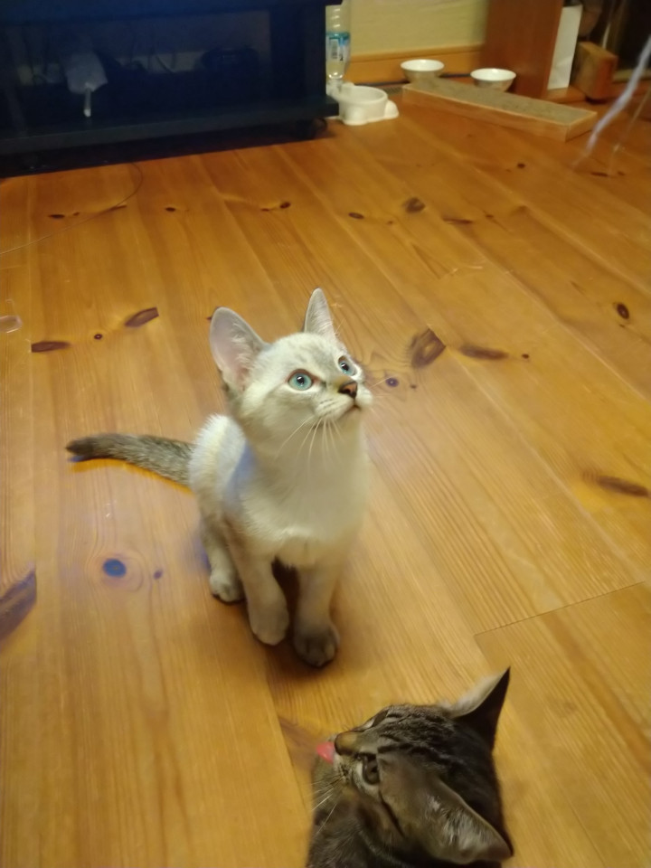 兄弟猫と仲良く遊んでいます。