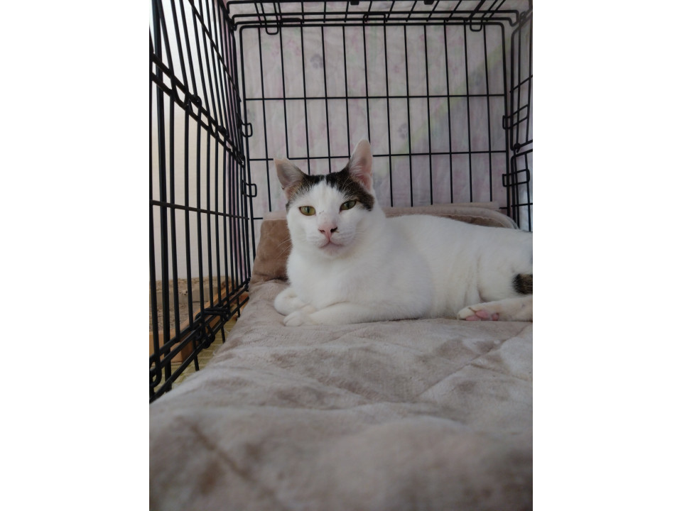 2025年4月に14匹の多頭現場TNRをした時の1頭です。6月に現場訪問した際、下半身を引きずって歩く「おにいさん」を発見しすぐに病院に連れて行くと、交通事故で骨盤複雑骨折し便の通り道がふさがれた状態になっていなことが判明。すぐに整形専門医に移り手術をして元気に回復しました。左足にマヒ下残りますが不自由なく生活できます。ただ、もう外猫として生活することは出来ないので保護しました。大変大きな手術で高額医療費用がかかりましたが、命を取り留めることができてよかったです。