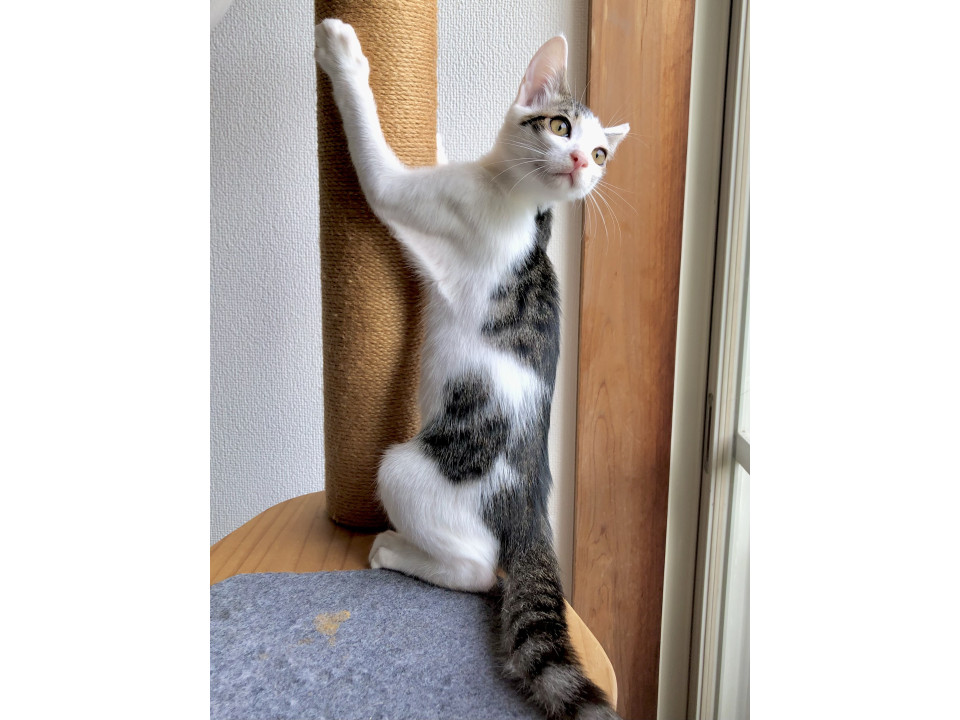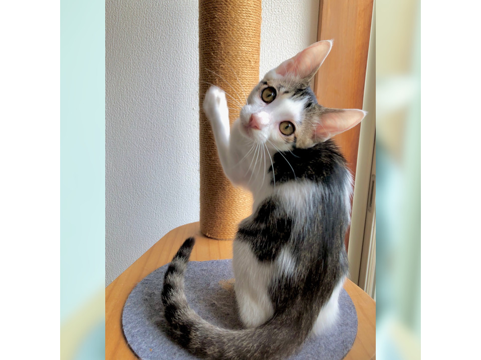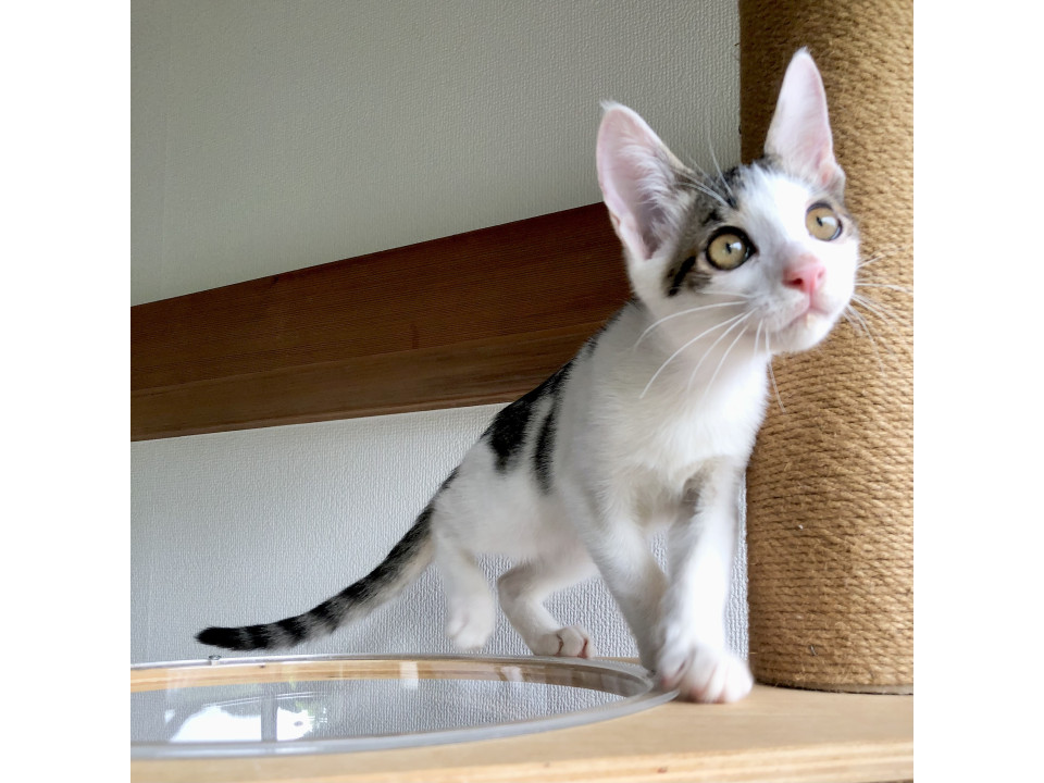 場所人見知りなく馴染みが抜群にいいです。尻尾がスラリと長くスタイル抜群、お目々ぱっちりイケにゃんです。子猫らしく活発なので仲良し兄妹のエンゼルちゃんと一緒のお迎え歓迎です!先住さんがいらっしゃる環境も歓迎です!