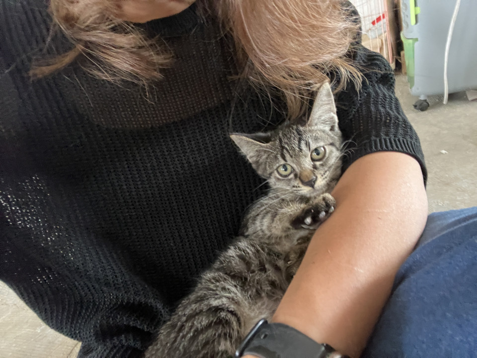 倉庫で産まれた子だそうで持ち主の方が保護してくださいました。