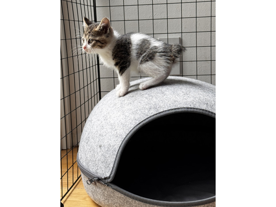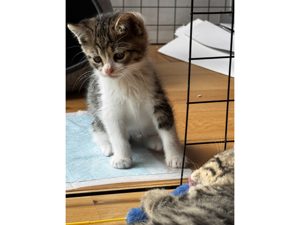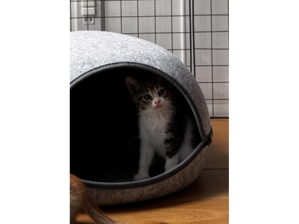 兄弟猫と元気に遊んでいますが、怖がりで人にはまだ慣れていないので、逃げてしまいます