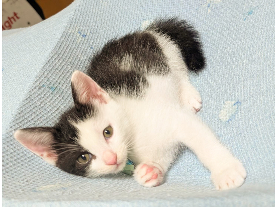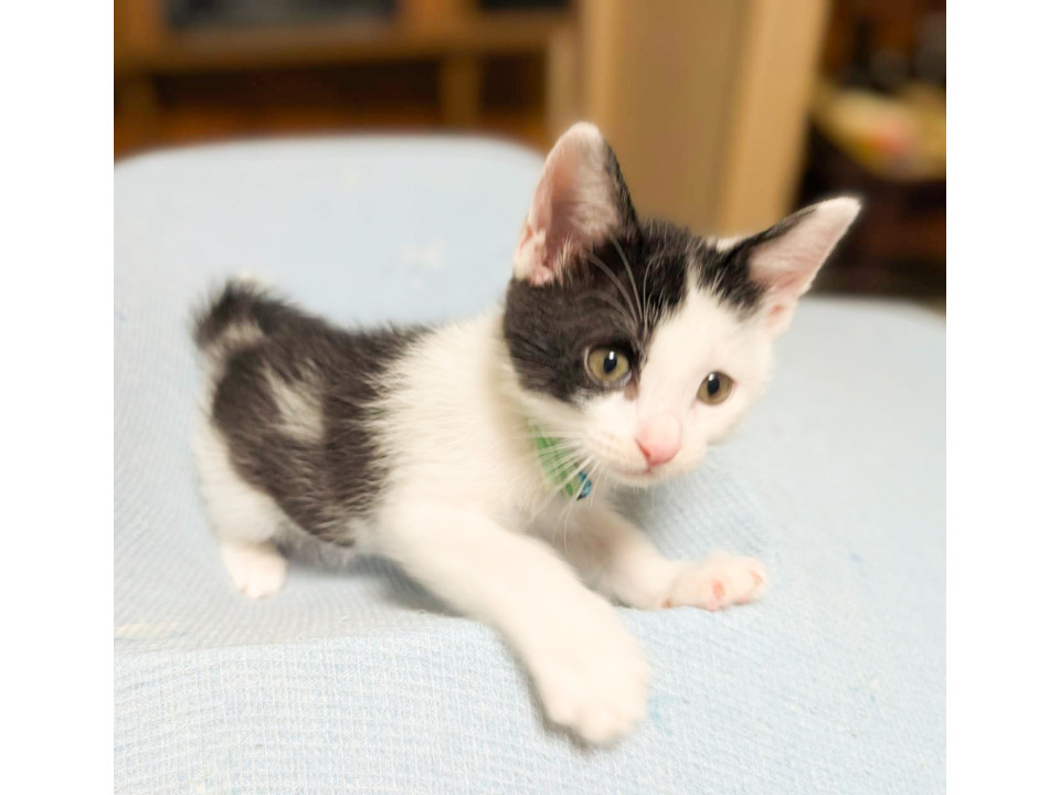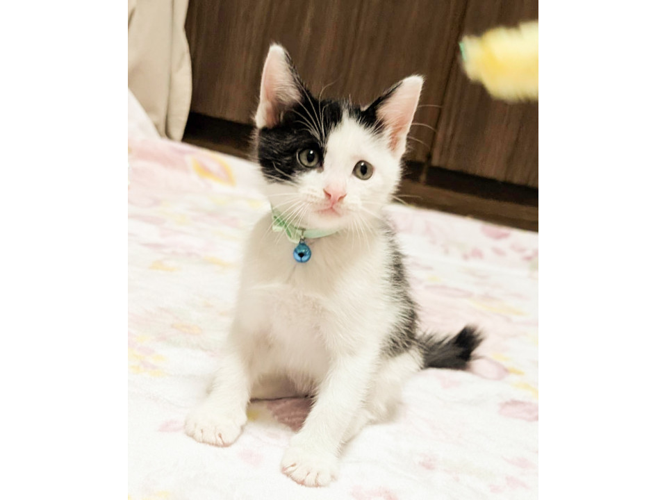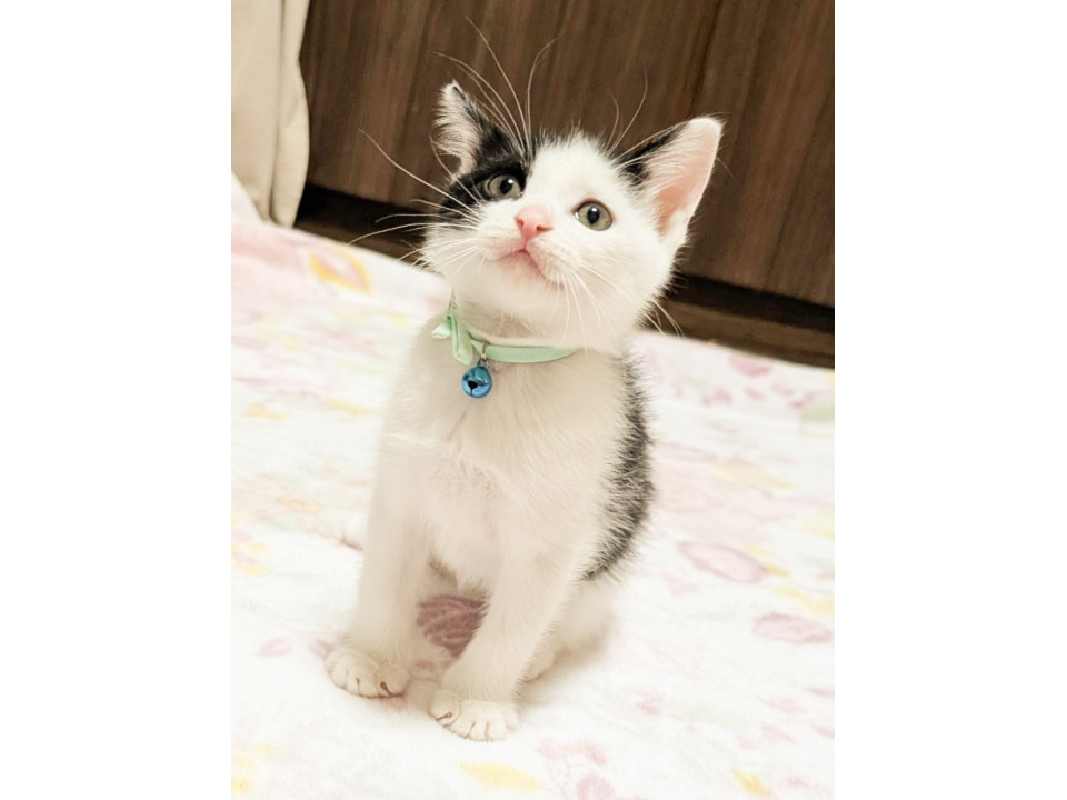 アシンメトリーの白黒。甘えん坊で膝の上に乗ってきます。シッポの先が折れてる鍵しっぽ