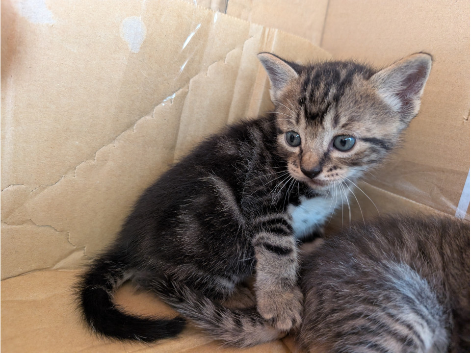 野良猫が駐車場の収穫かごに出産してしまい居座ってます。仕方ないので段ボールハウスを製作して玄関近くで育てます