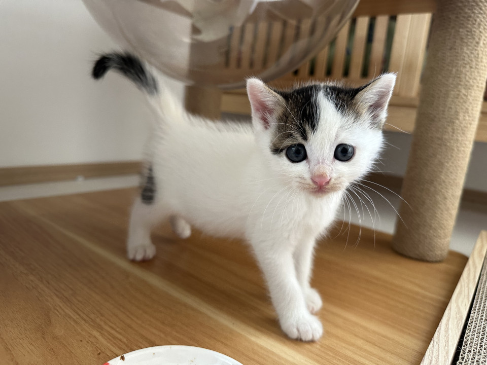 生後1ヶ月のキジ白の男の子