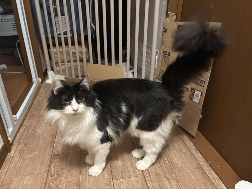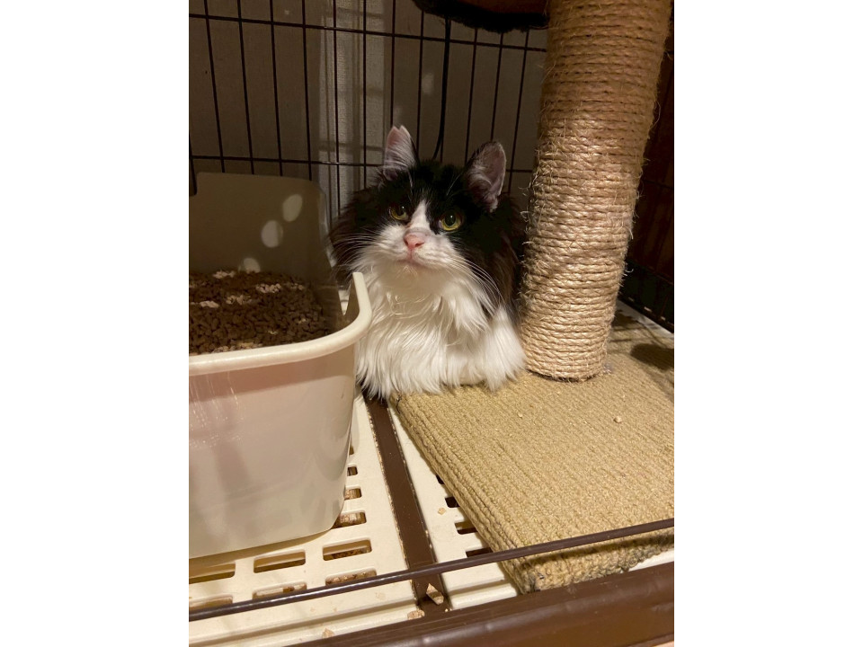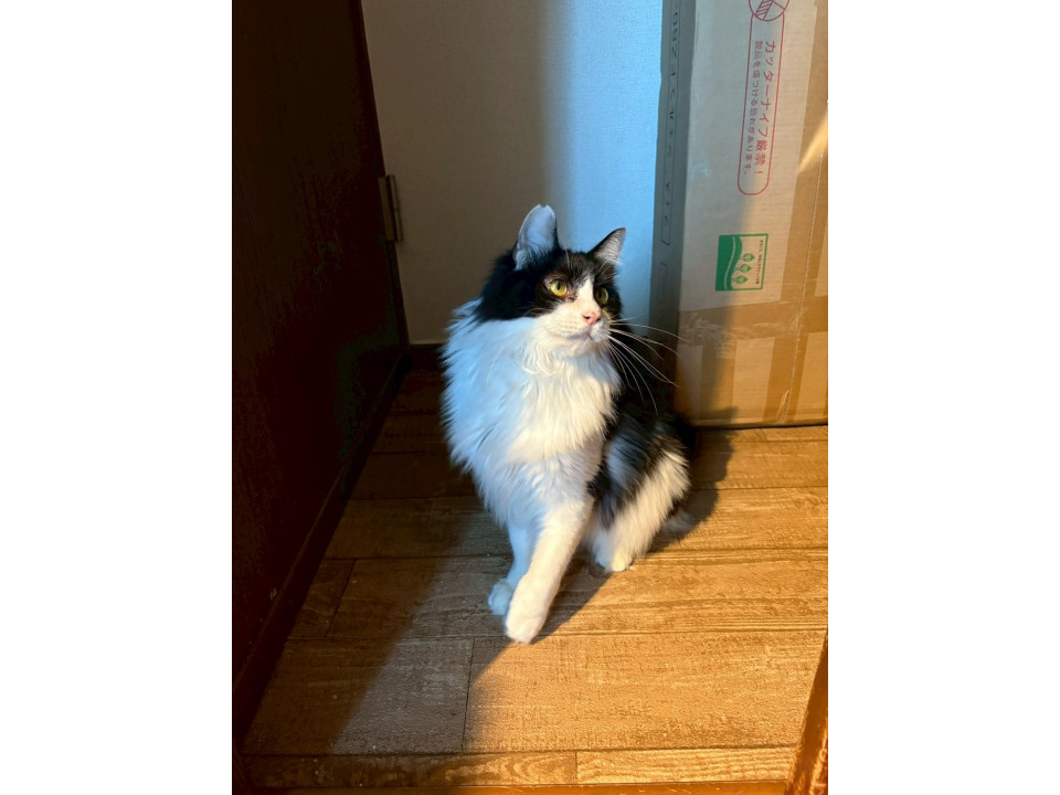 ノルウェージャン風のフサフサなハチワレ長毛さんです。