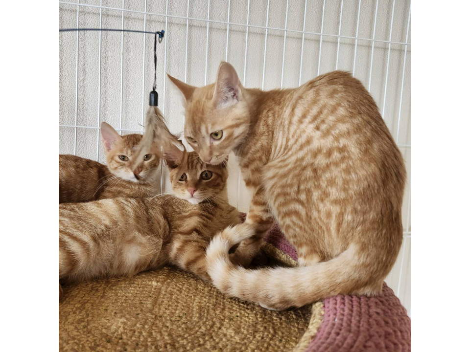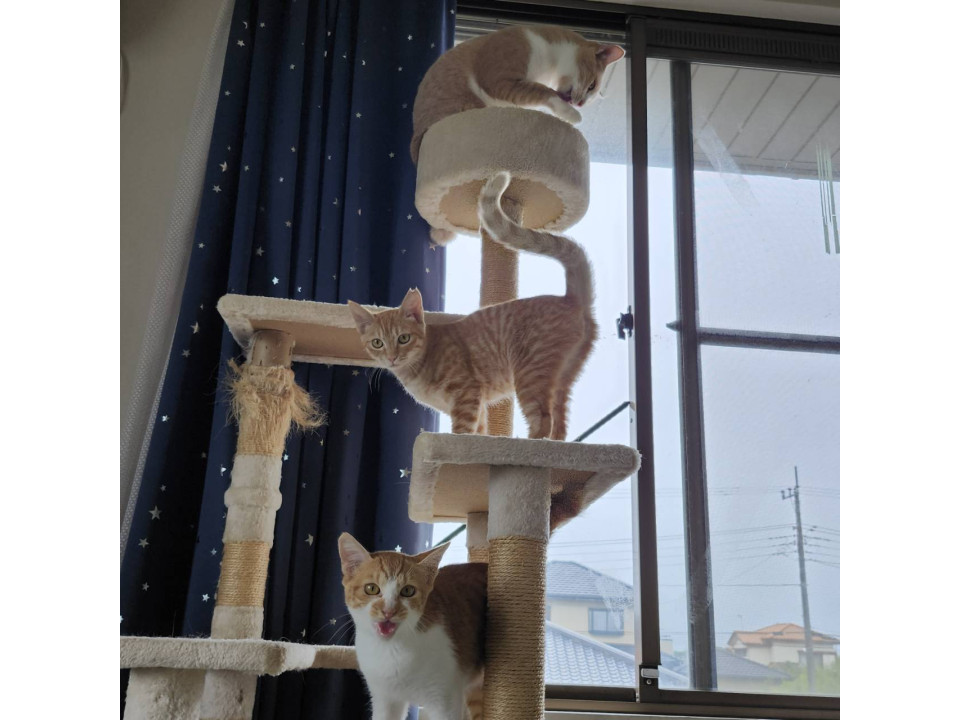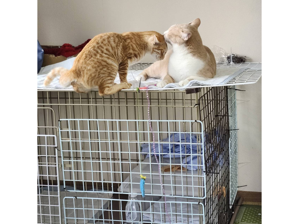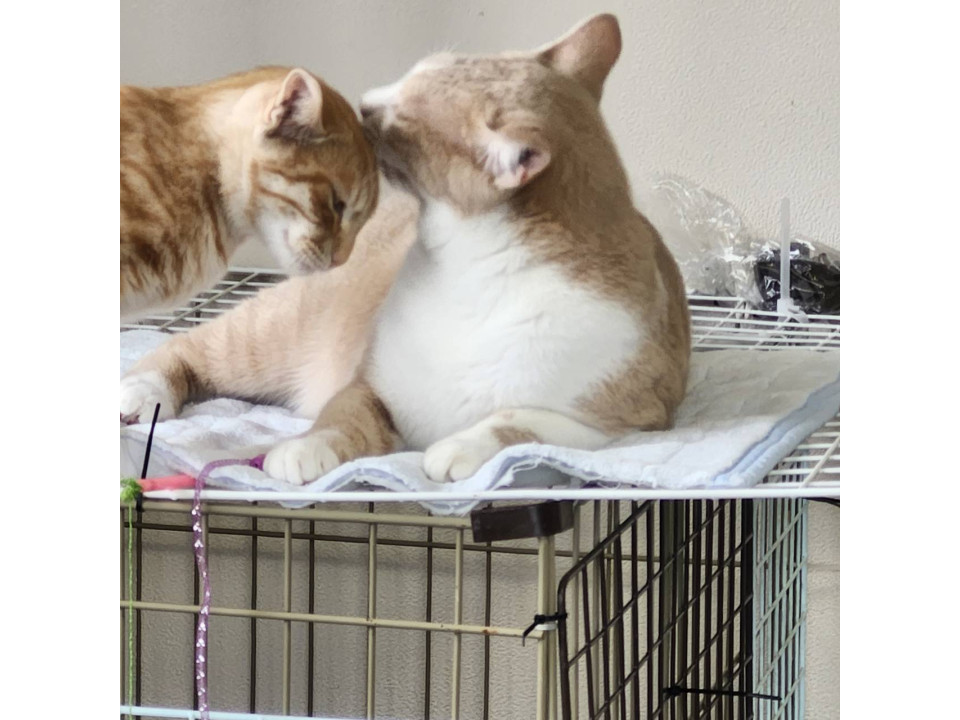 人に対してはまだ慎重な一方、猫同士は打ち解けるのが早いです。