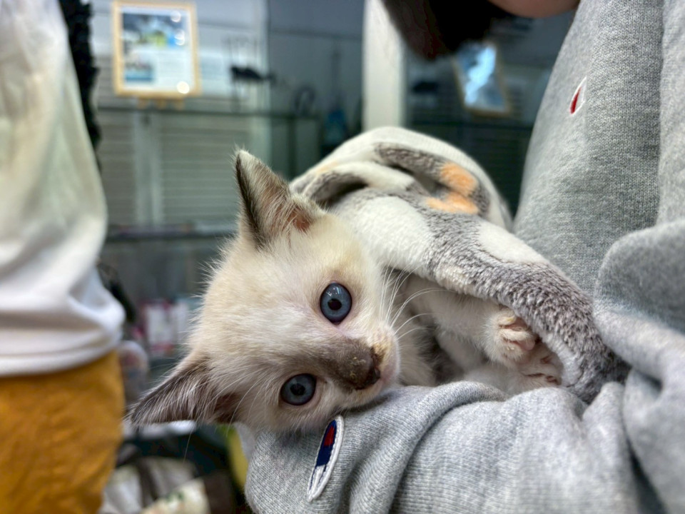 動物愛護センターから引き出した、3匹兄妹です。シトロン君と、ペシェちゃんは、ラグドール?シャム風の毛色をしています。